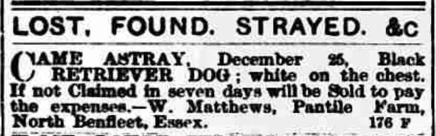 Sometimes, it’s the smallest, most unexpected moments that linger longest in memory. On Christmas Day 1896, a lost black retriever dog, ‘white on the chest,’ turned up at Pantile Farm, Wickford. Farmer W. Matthews placed a notice in the local paper: if the dog wasn’t claimed within a week, it would be sold to pay the expenses.
