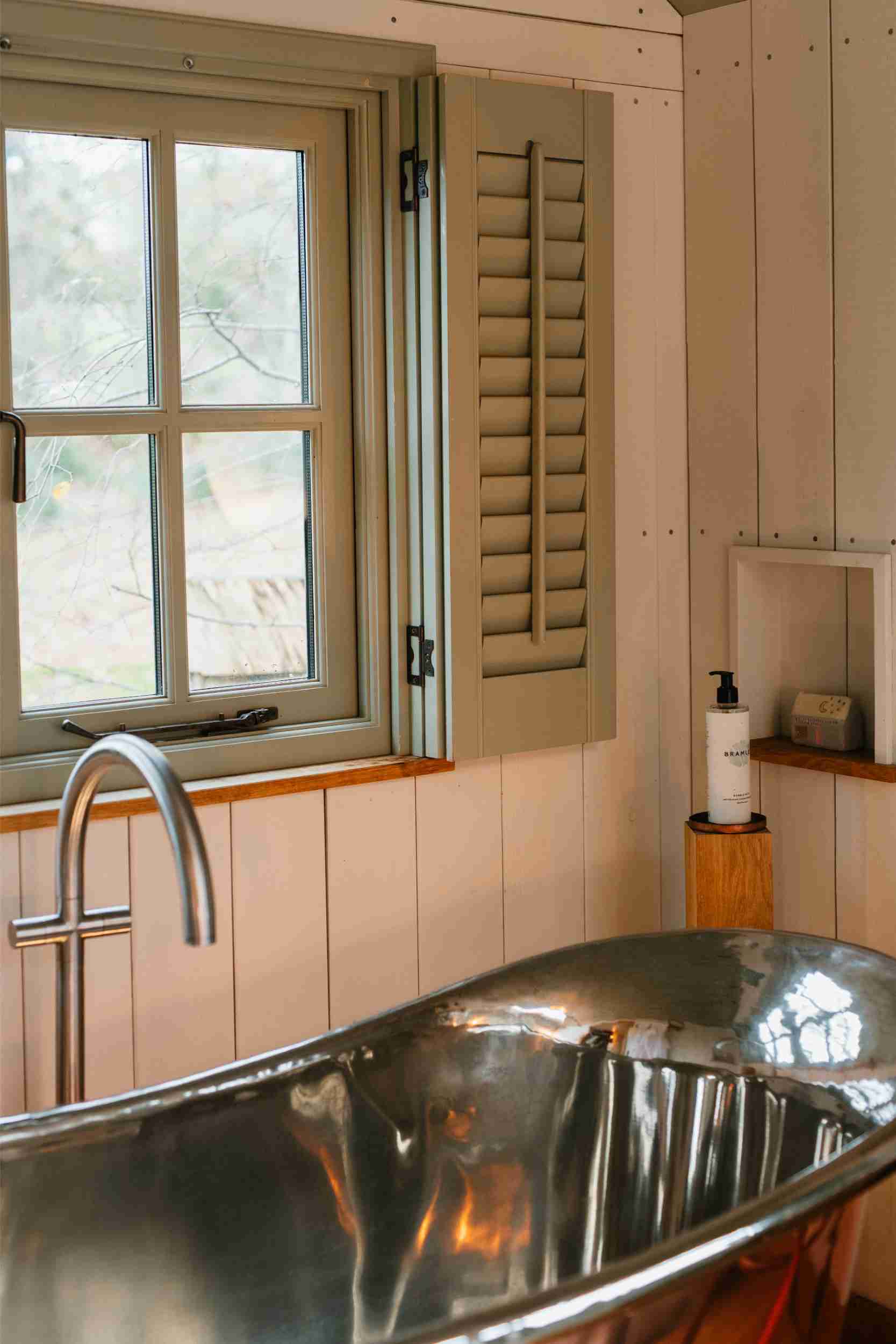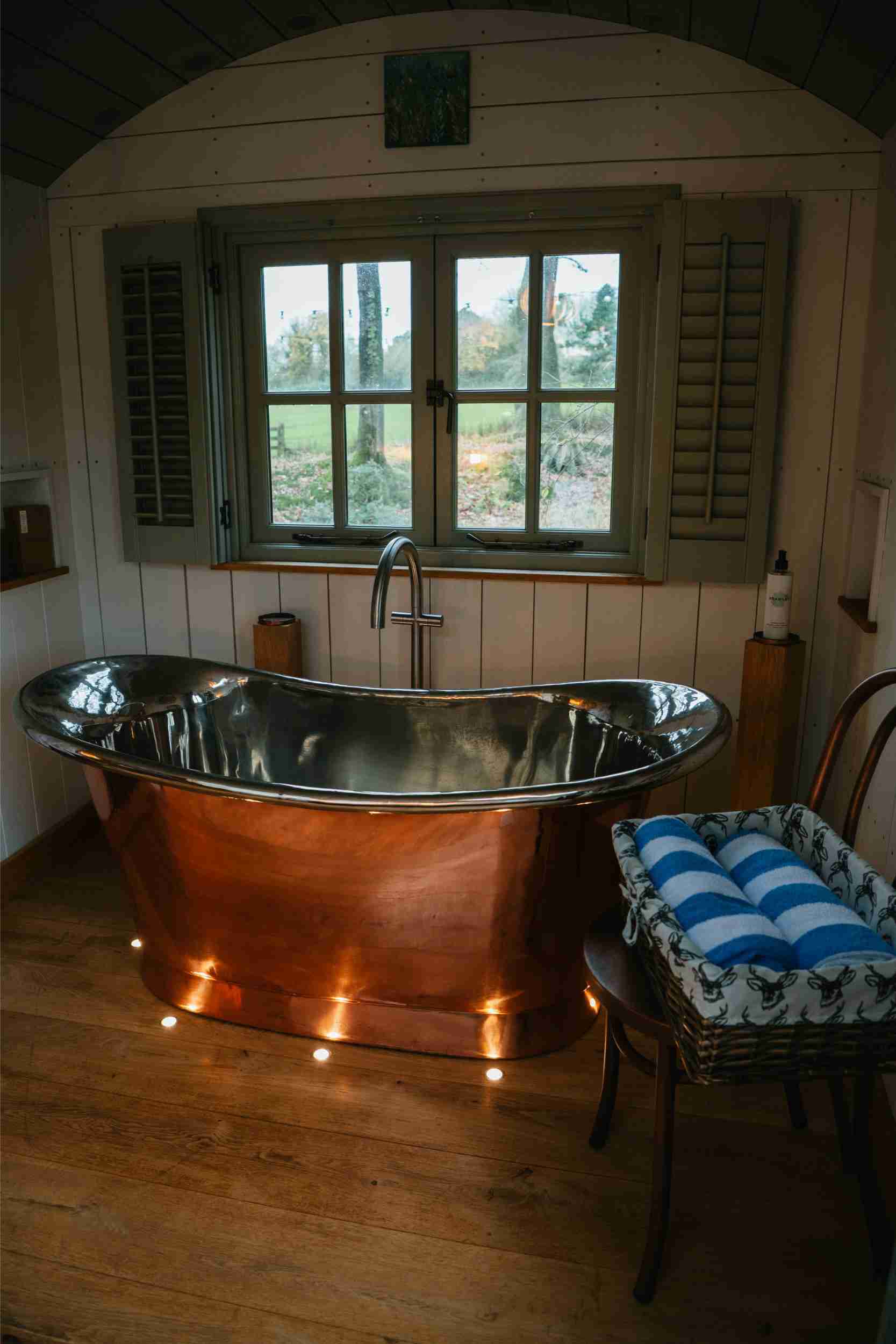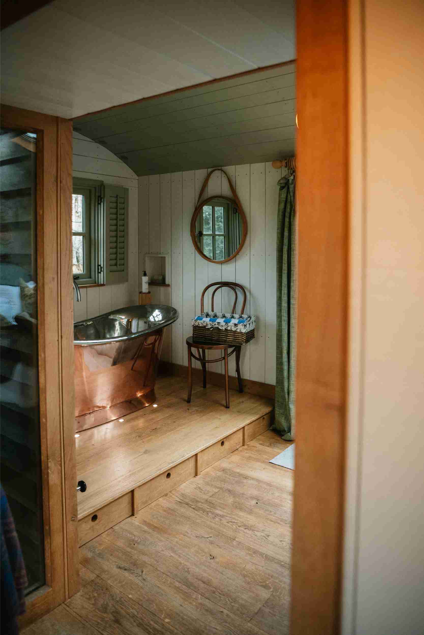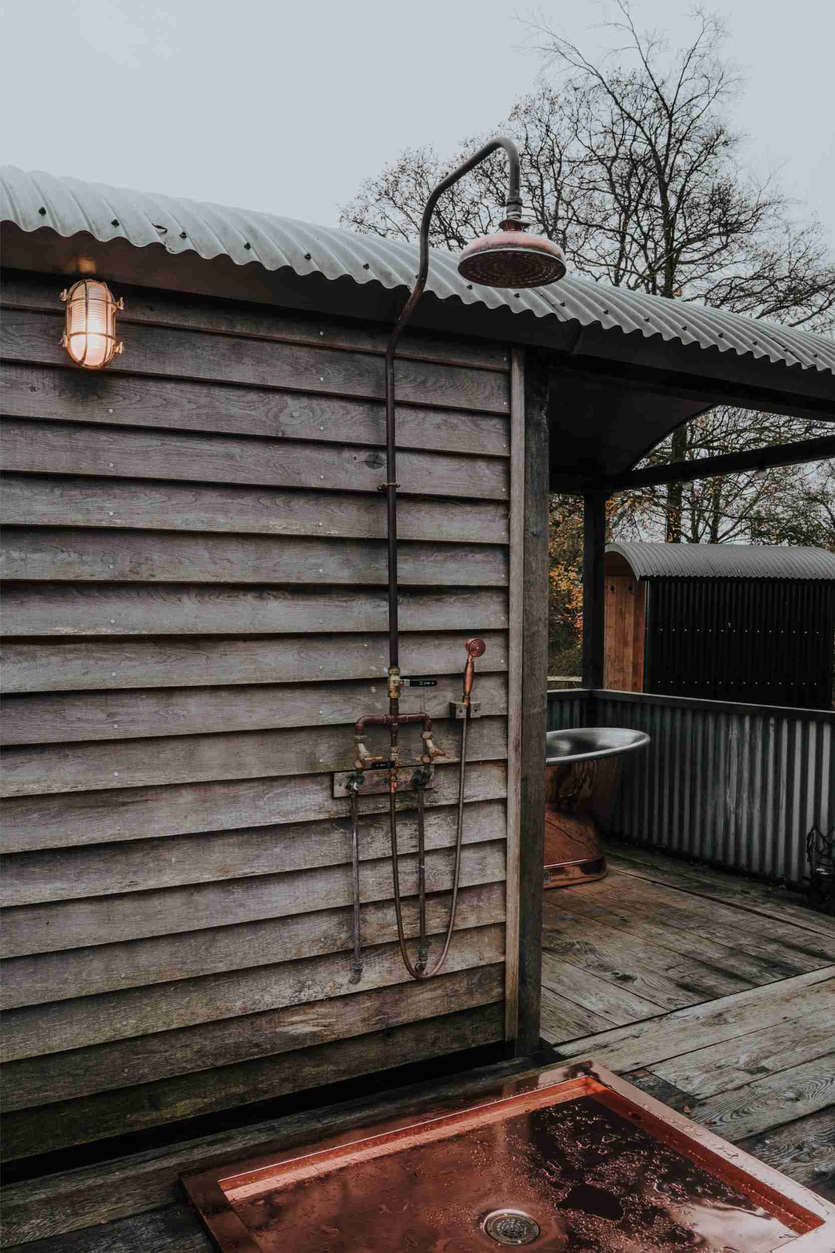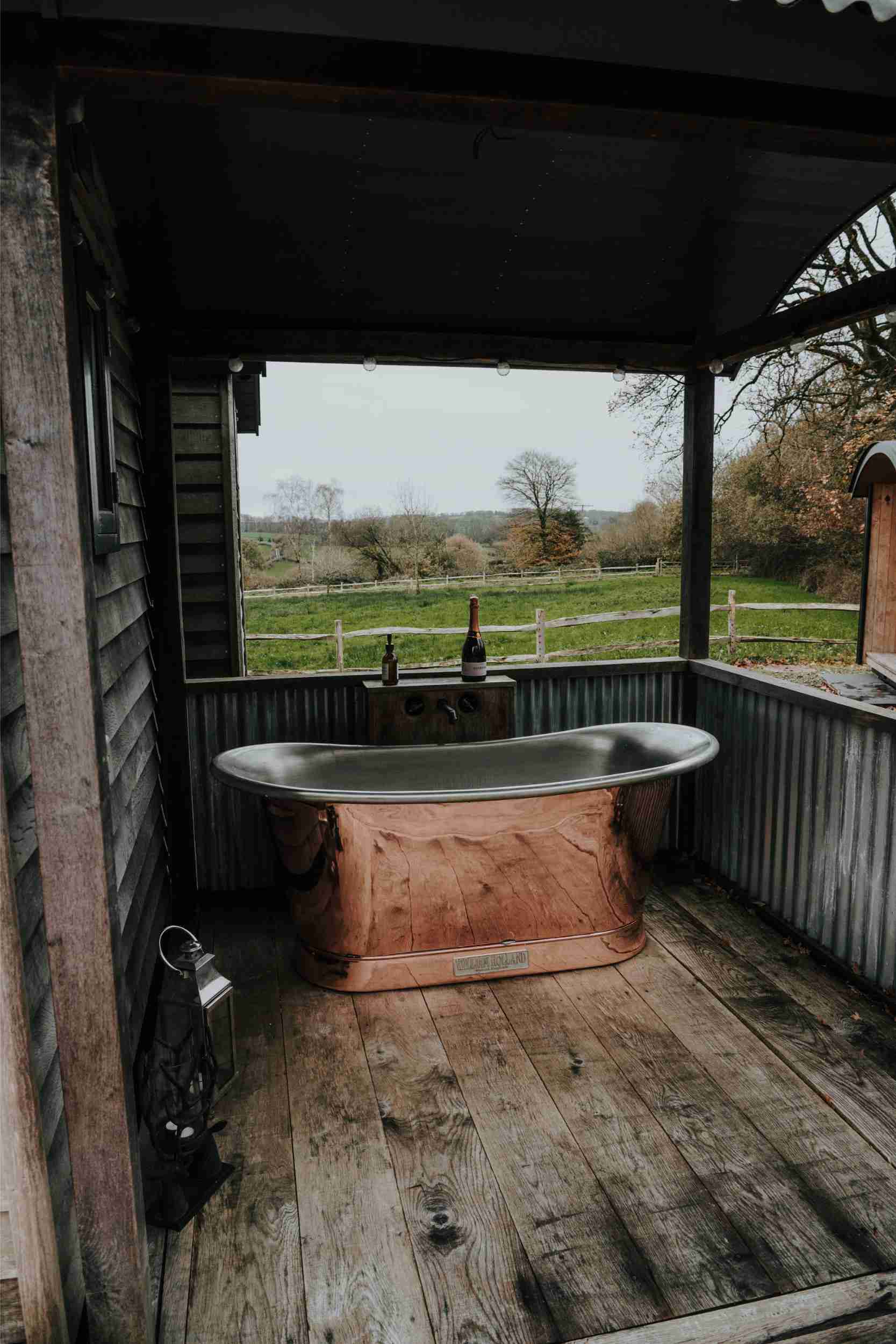 The interiors of the huts are wonderfully designed with gorgeous fittings such as Belfast sinks, wood burning stoves, natural fabrics and materials, as well as copper baths, wood fired hot tubs, outdoor showers and more. The farmhouse is also available with period features throughout.