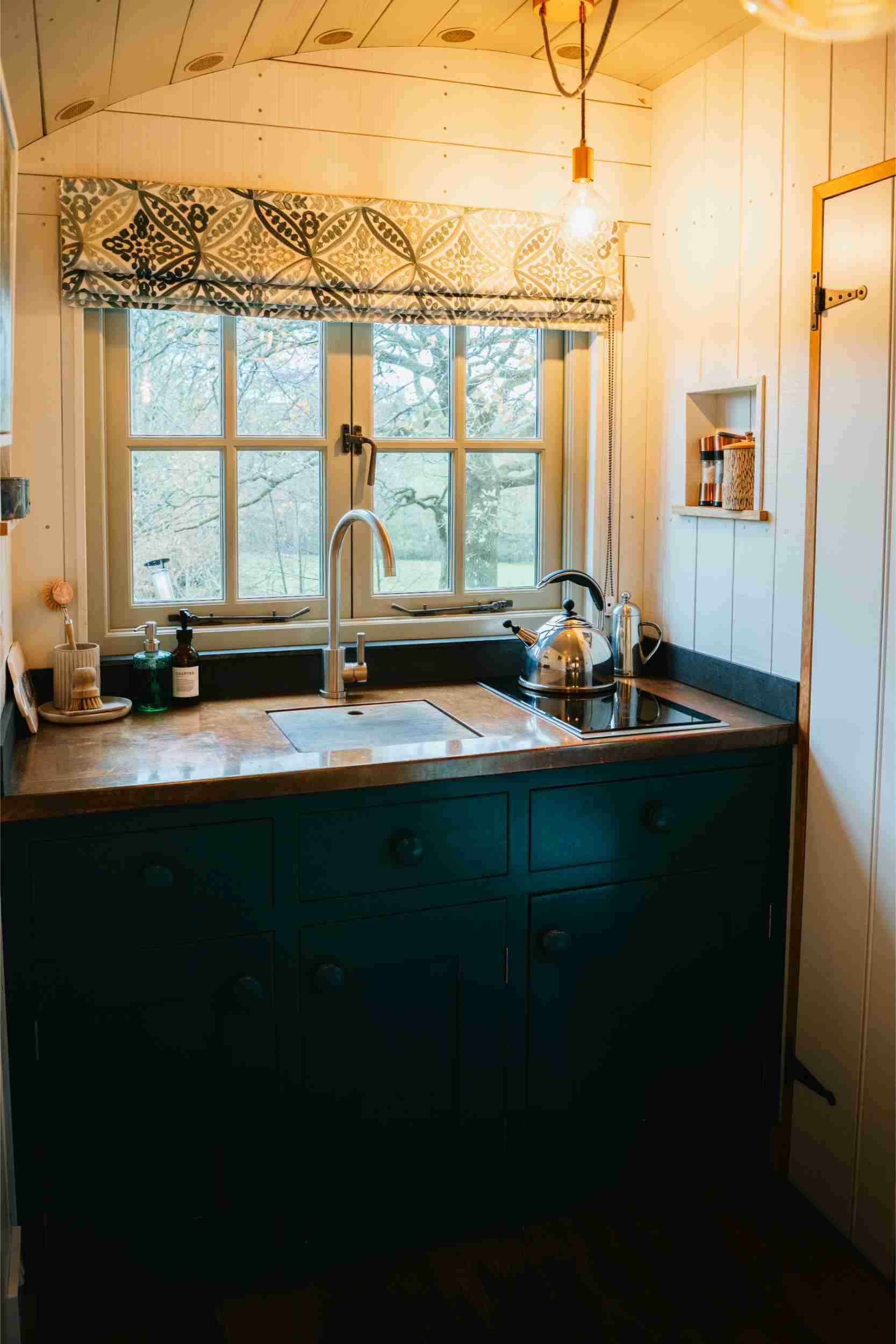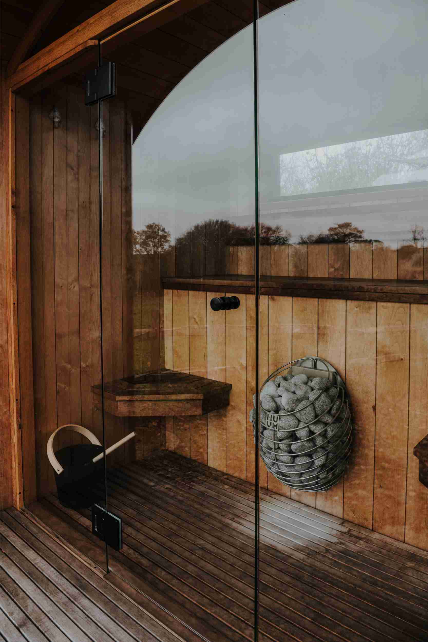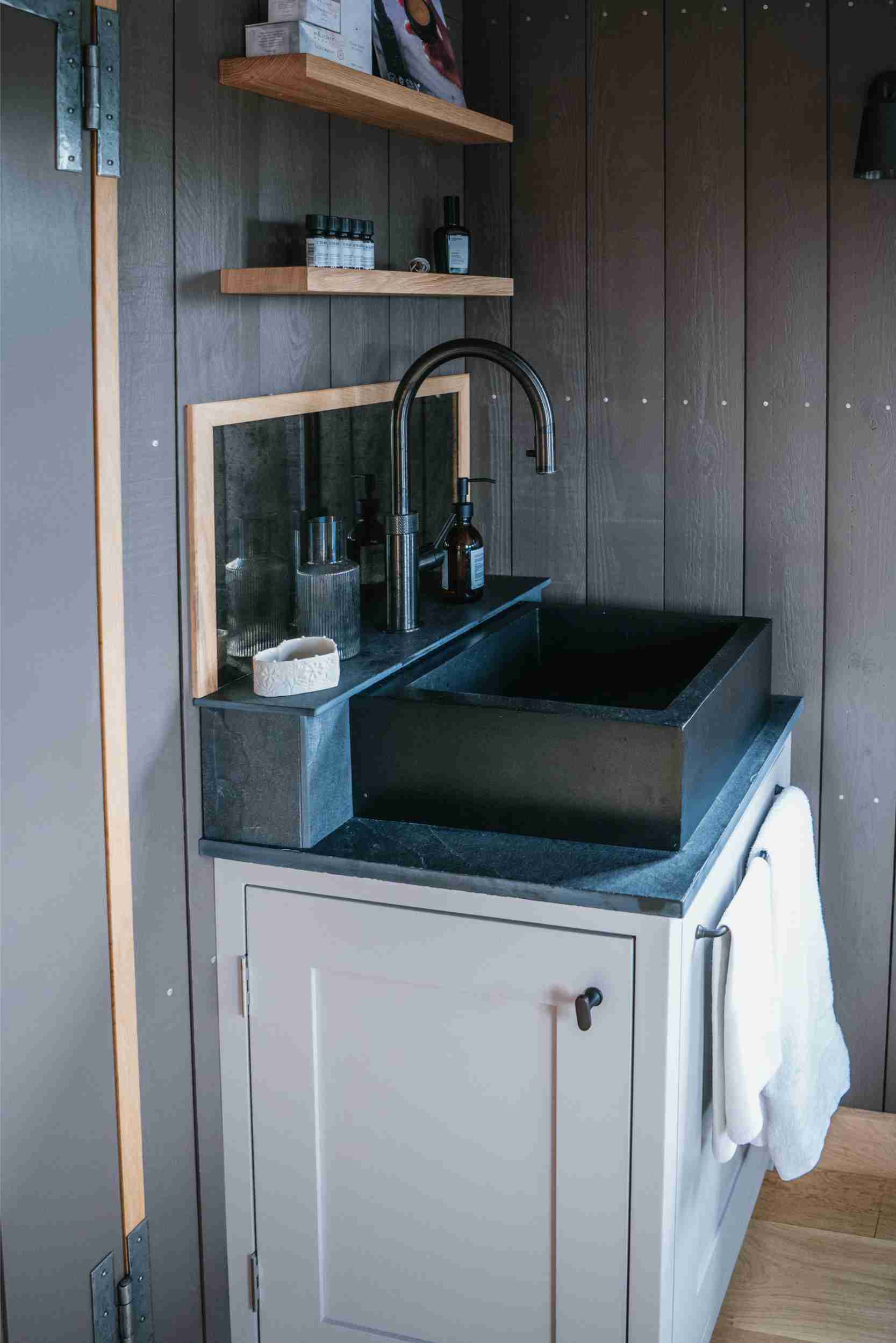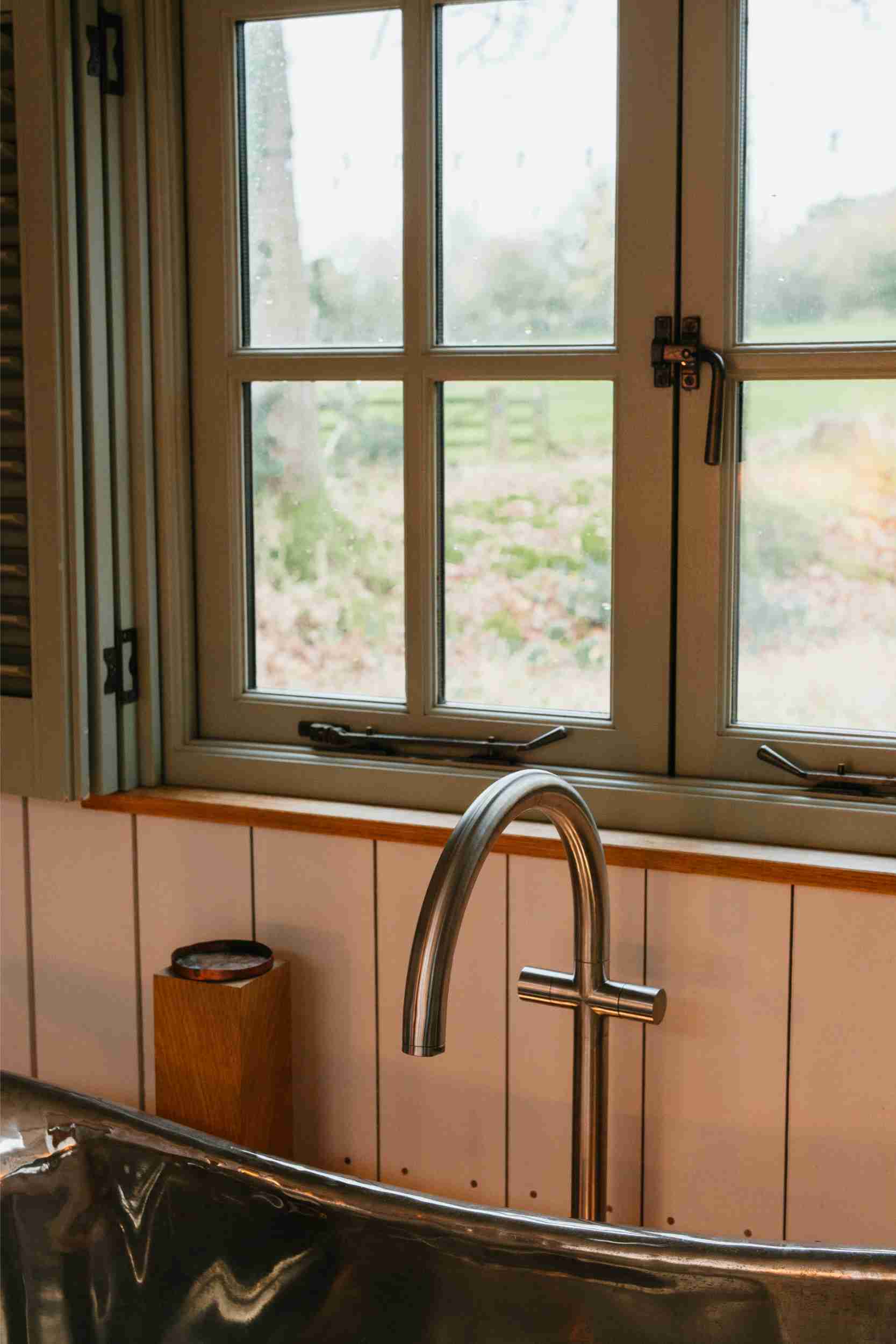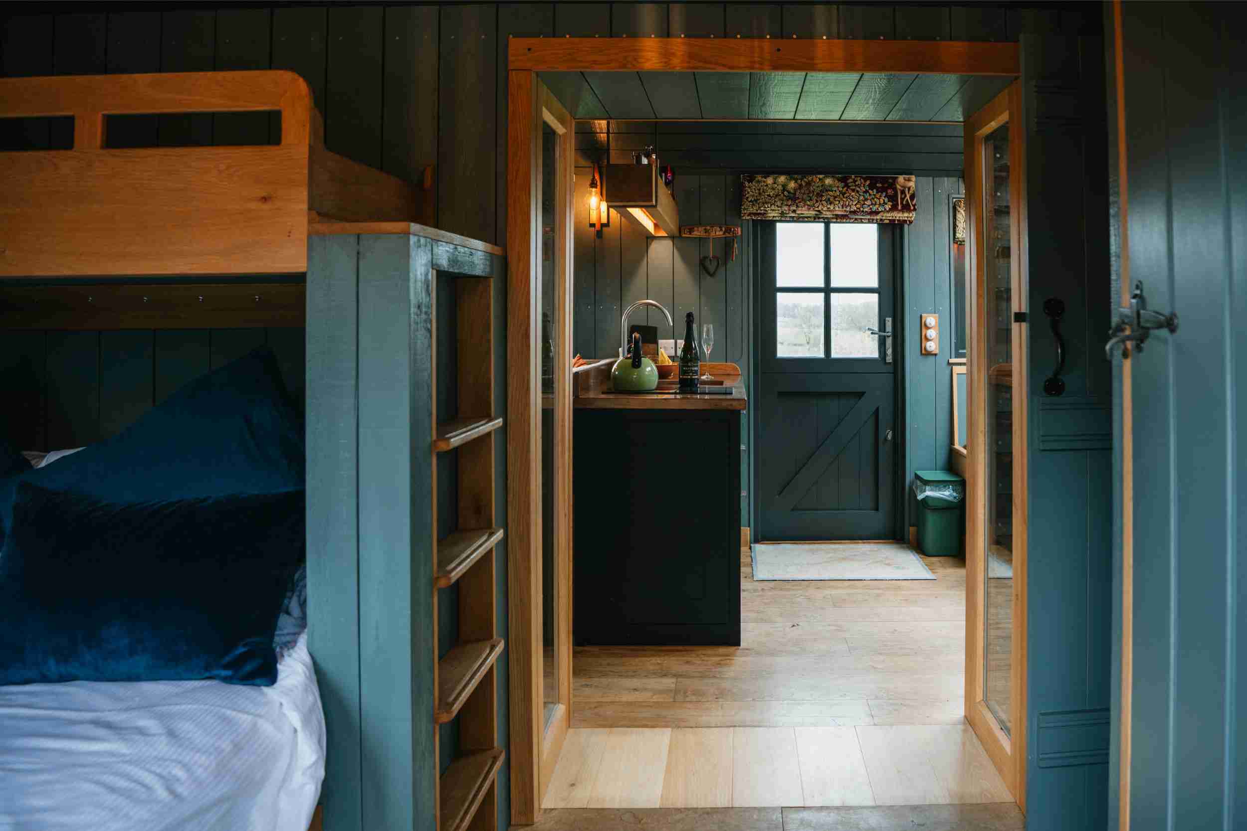 The interiors of the huts are wonderfully designed with gorgeous fittings such as Belfast sinks, wood burning stoves, natural fabrics and materials, as well as copper baths, wood fired hot tubs, outdoor showers and more. The farmhouse is also available with period features throughout.