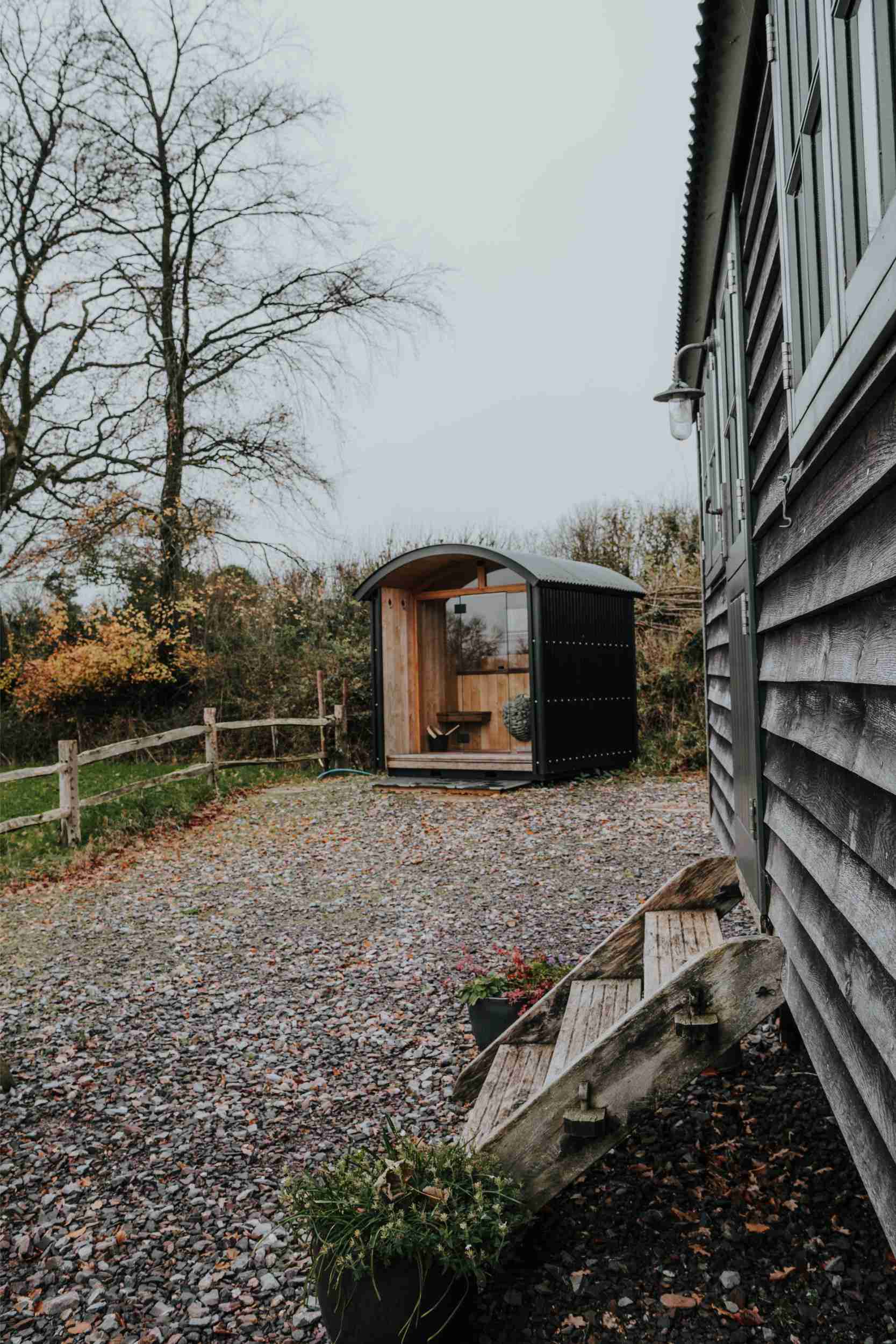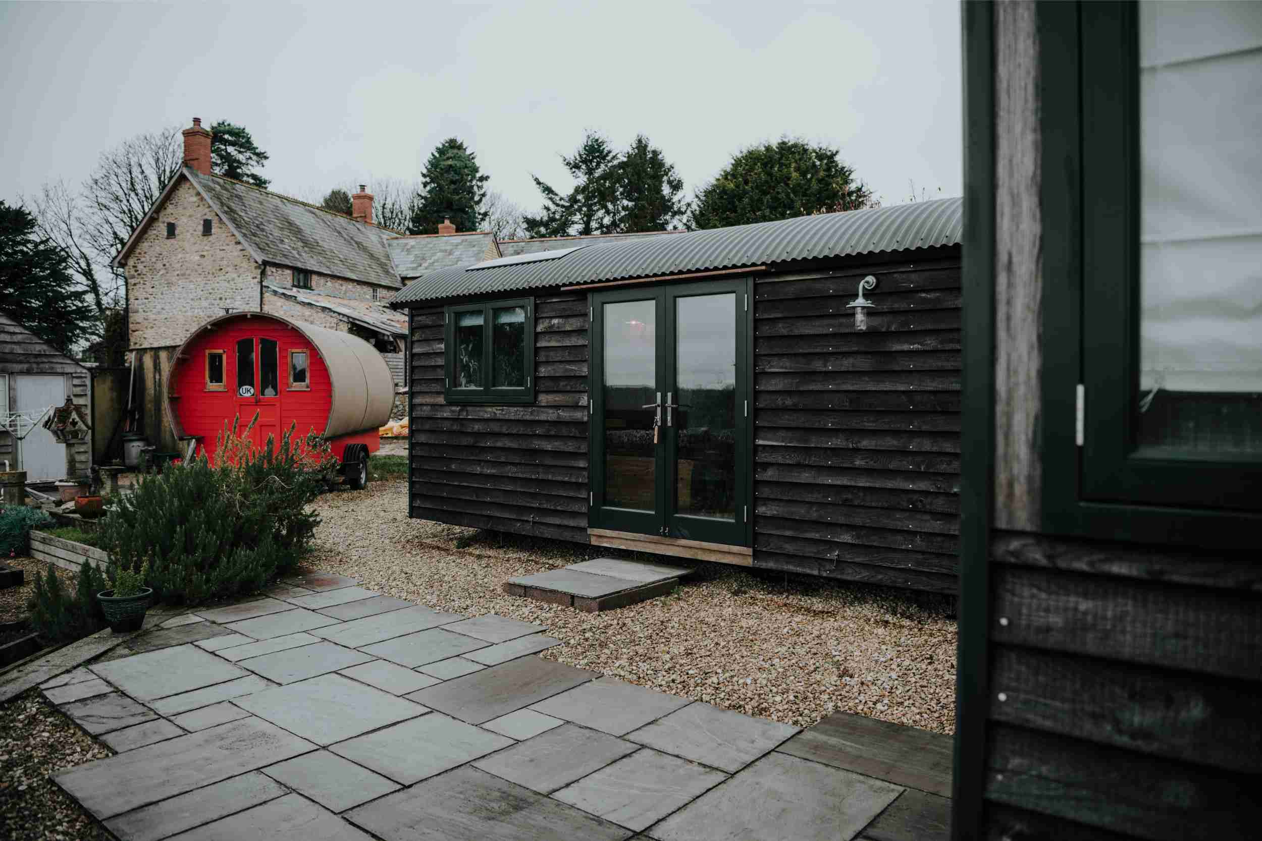 Luxurious Somerset shepherds' huts in ancient hills, orchards, medieval copse, woodlands and historic farmhouse
