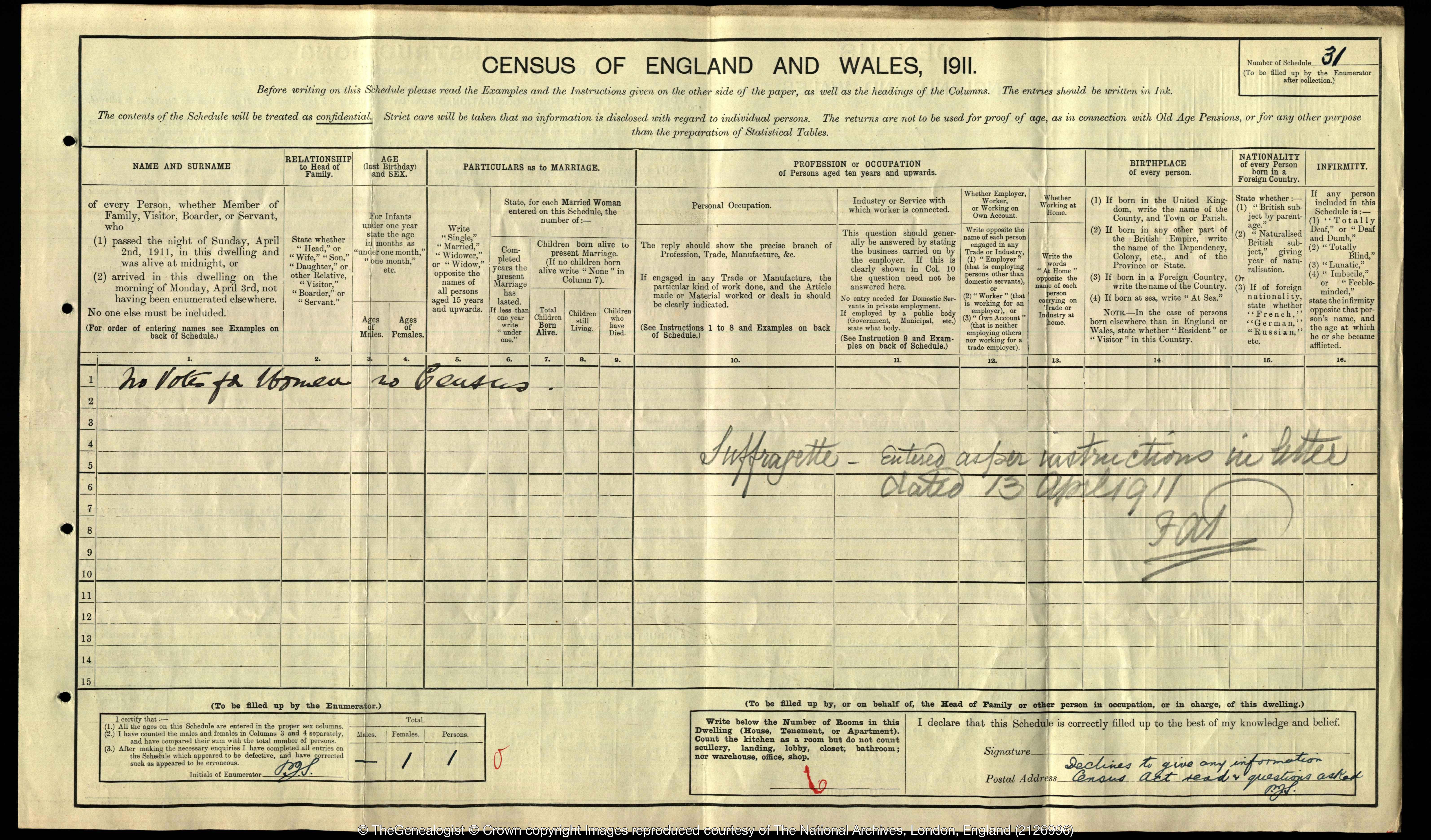 Margaret lived at The Potteries in Graffham, West Sussex. She boycotted the 1911 Census as part of the suffragette protest against women being denied the vote. What makes her story especially striking, from a house historian’s perspective, is that her absence still left a trail: her details were entered later, following instructions in a letter dated 13 April 1911.