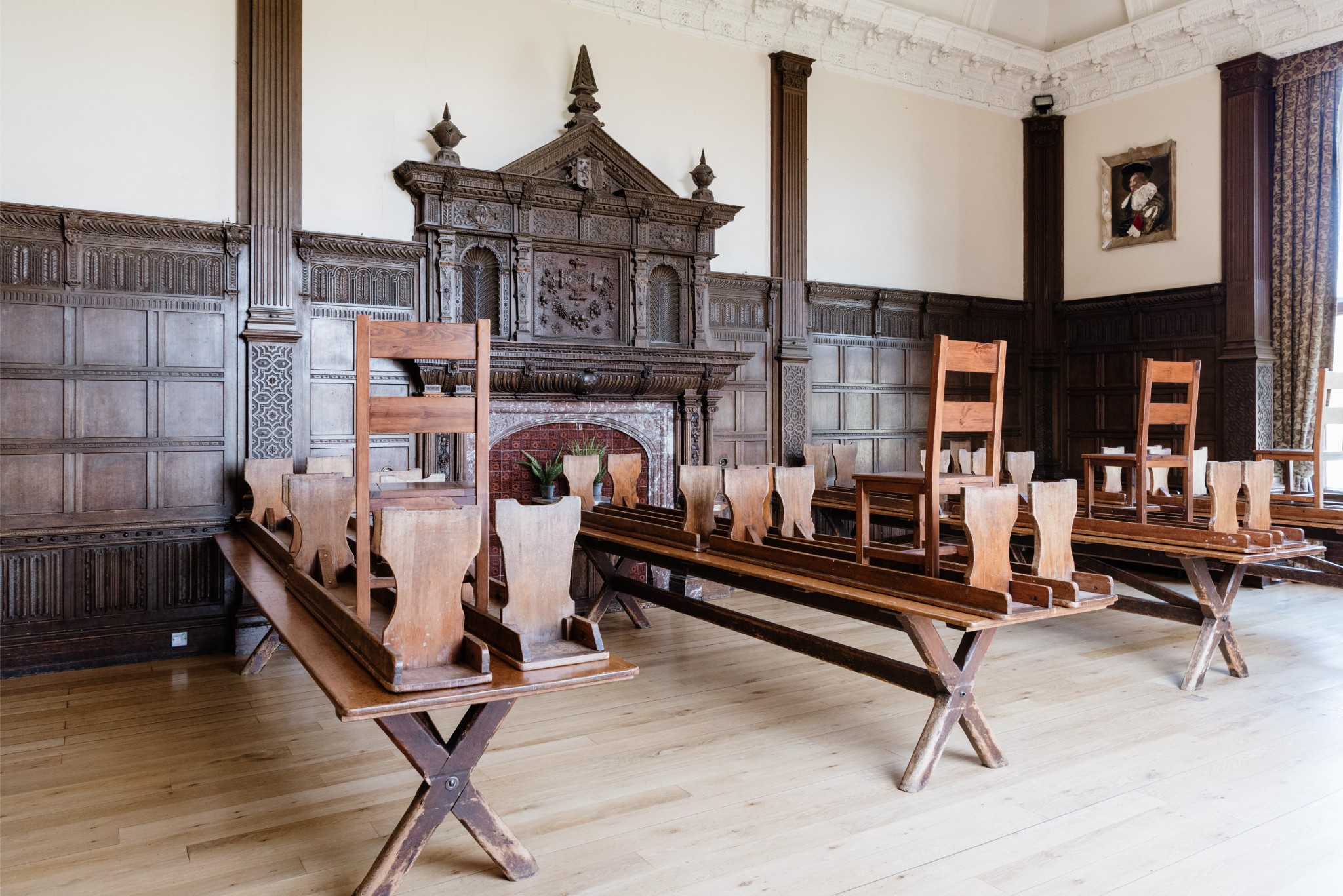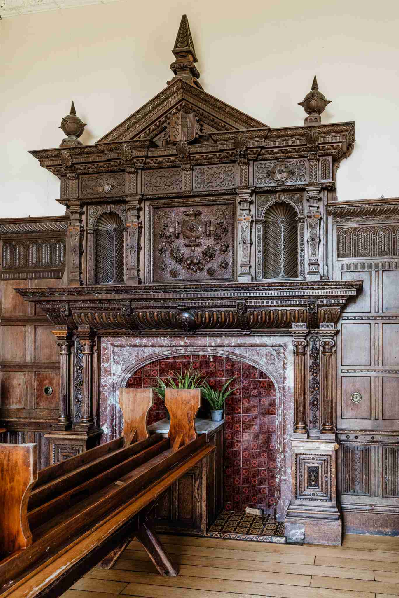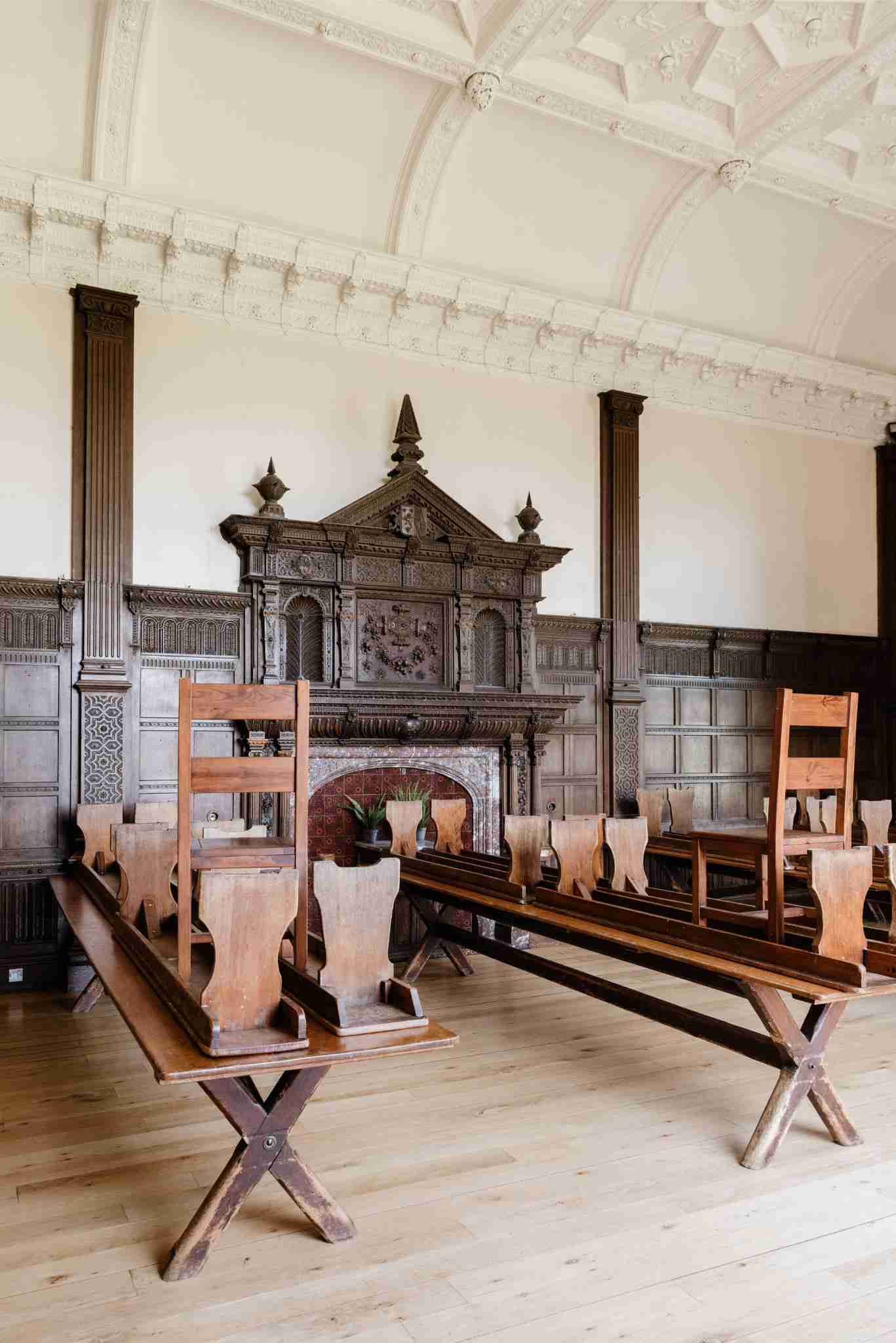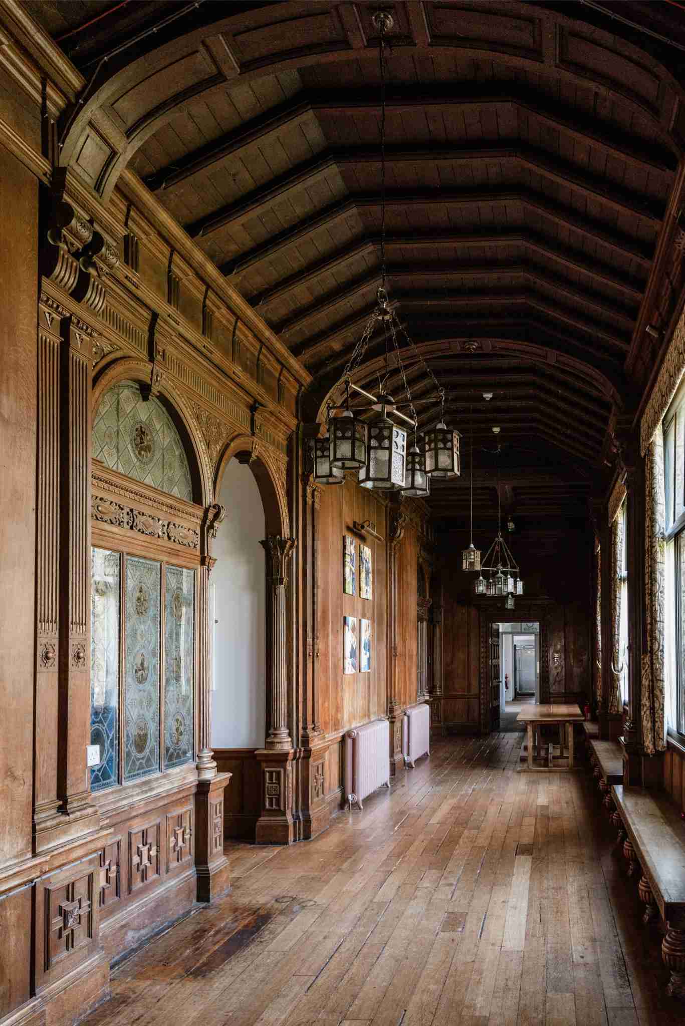 Inside you have incredible panelled hallways, huge rooms with plasterwork ceilings and ornate stained glass and lead windows. All the period features are here including some huge carved fireplaces, an immense carved wood staircase, large floor to ceiling windows, exposed beams and more. The possibilities for films, events, and photoshoots here are innumerate.