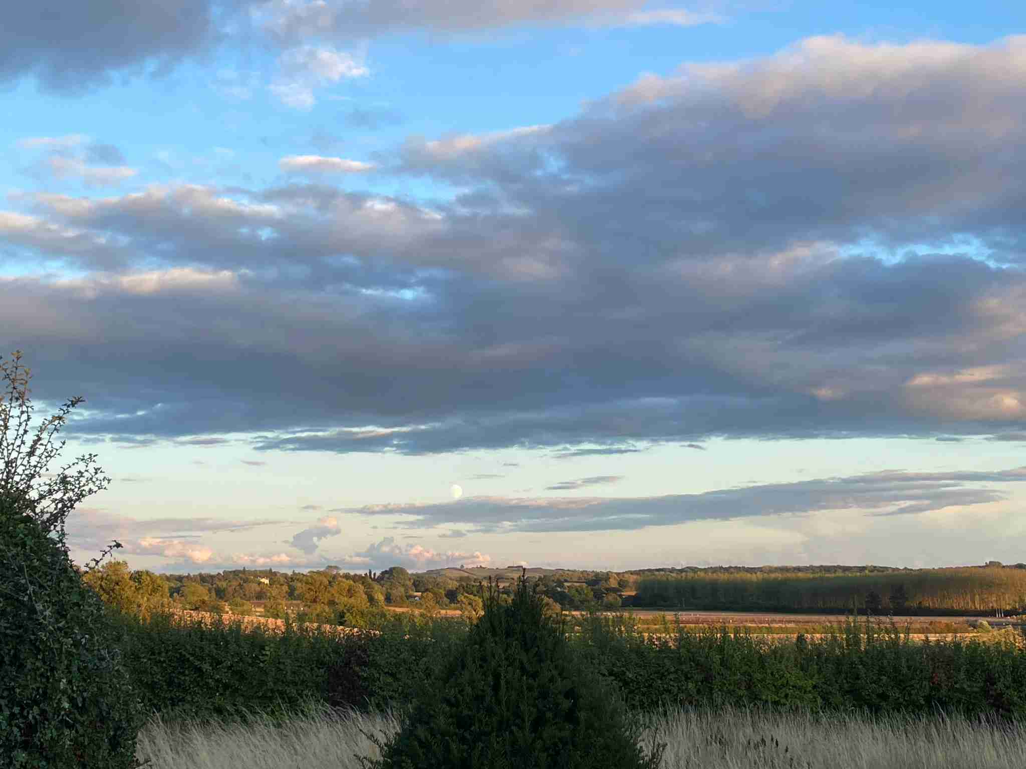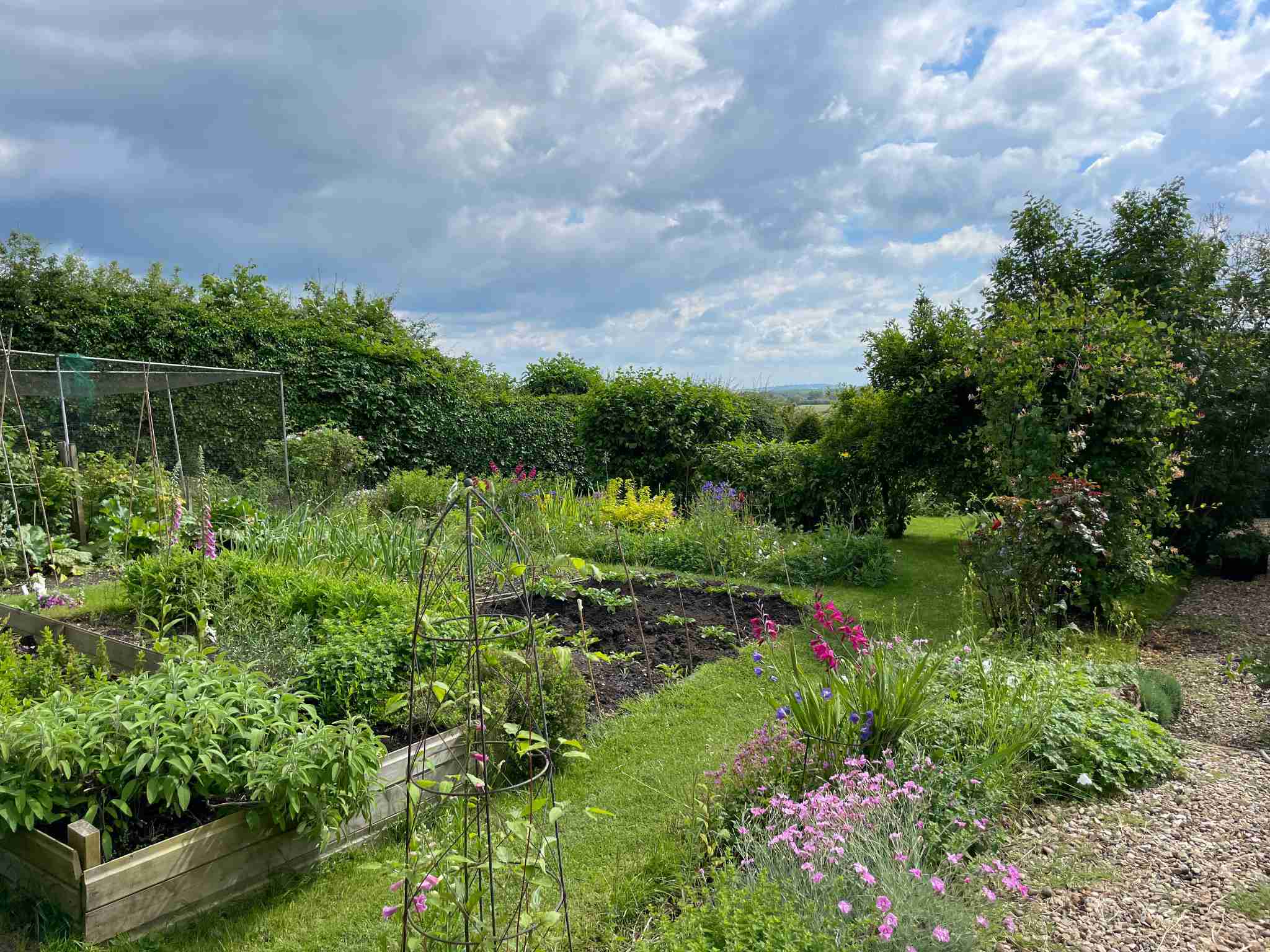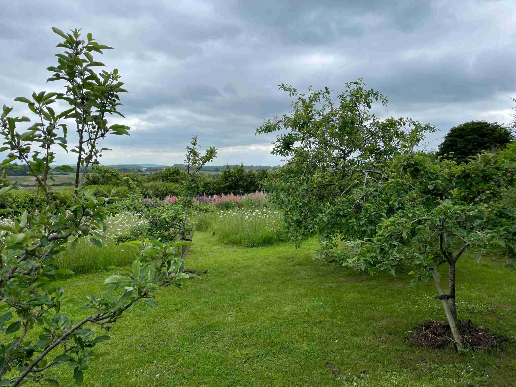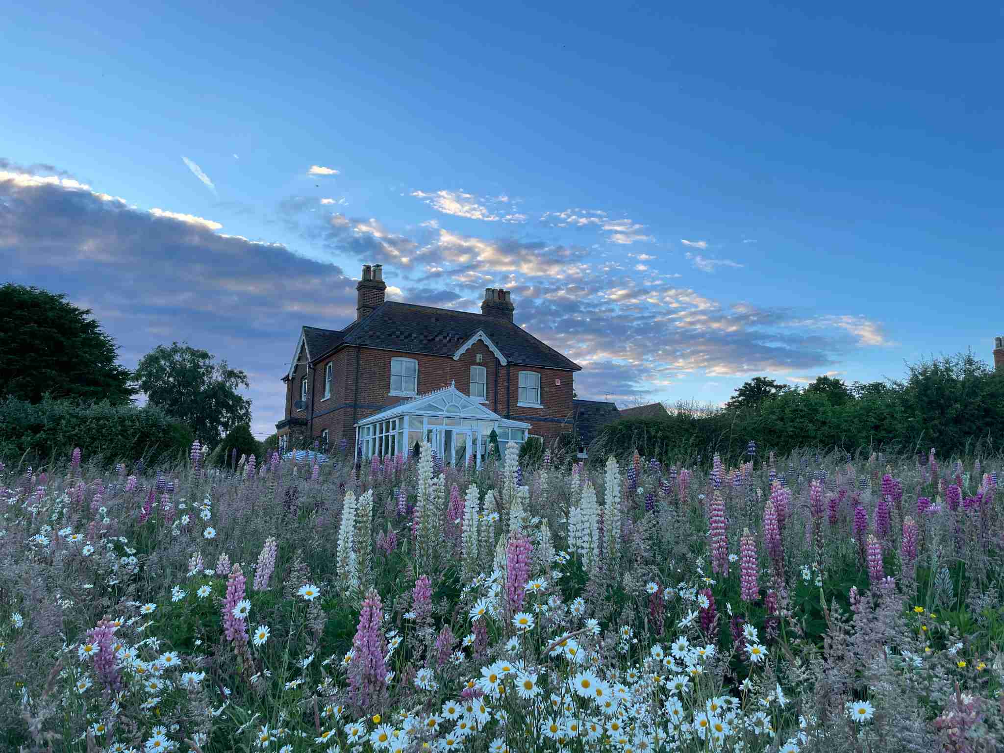 A glorious paddock with naturalised lupins in an array of colours as well as, buttercups, cow parsley and oxeye daisies. The paddock has far reaching countryside views to the south east across arable fields and woodland. The gradient of the meadow allows for some fantastic sunrises across the broad skyline it looks out to.