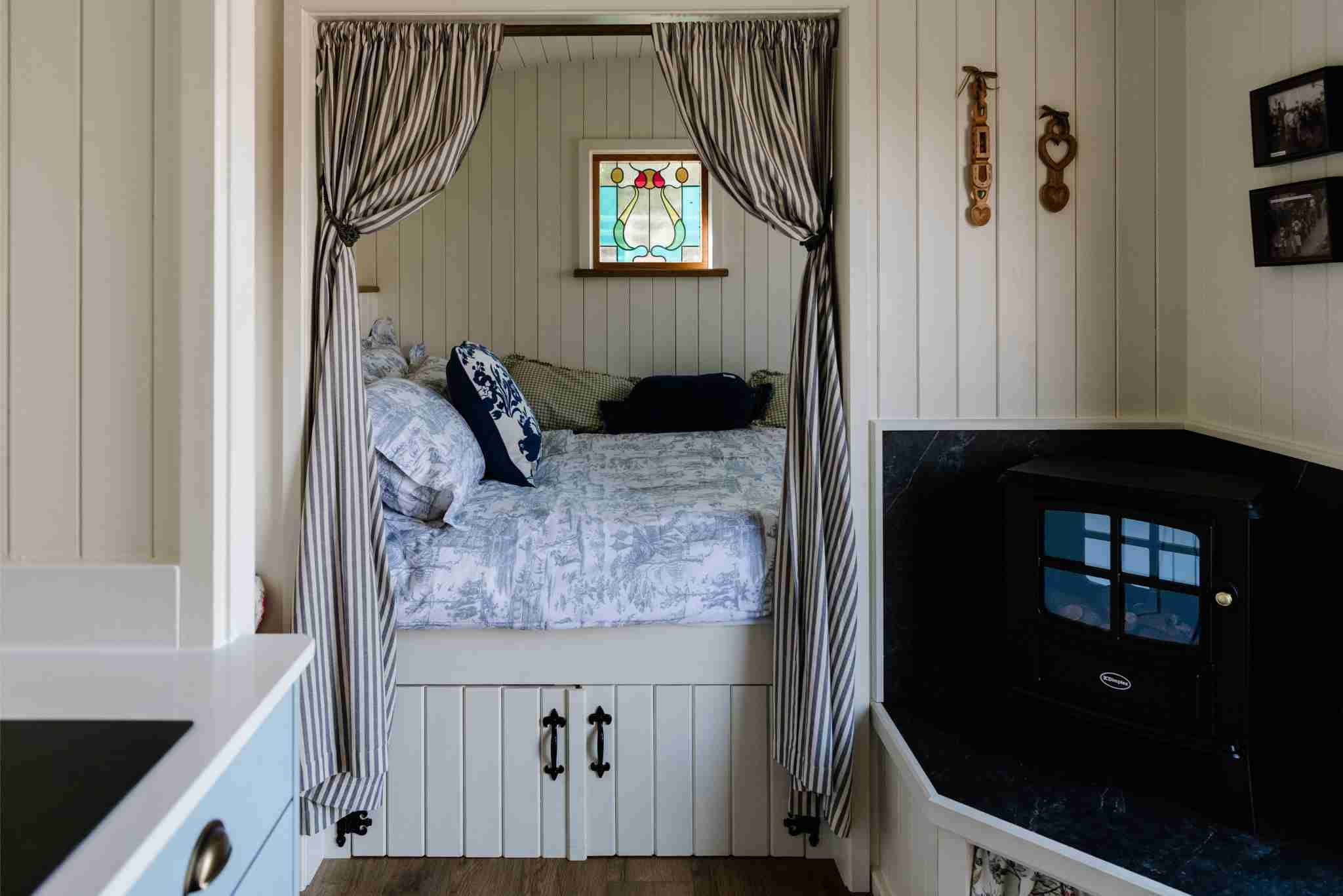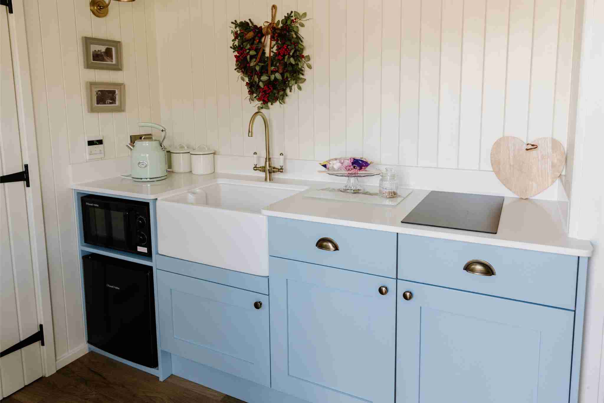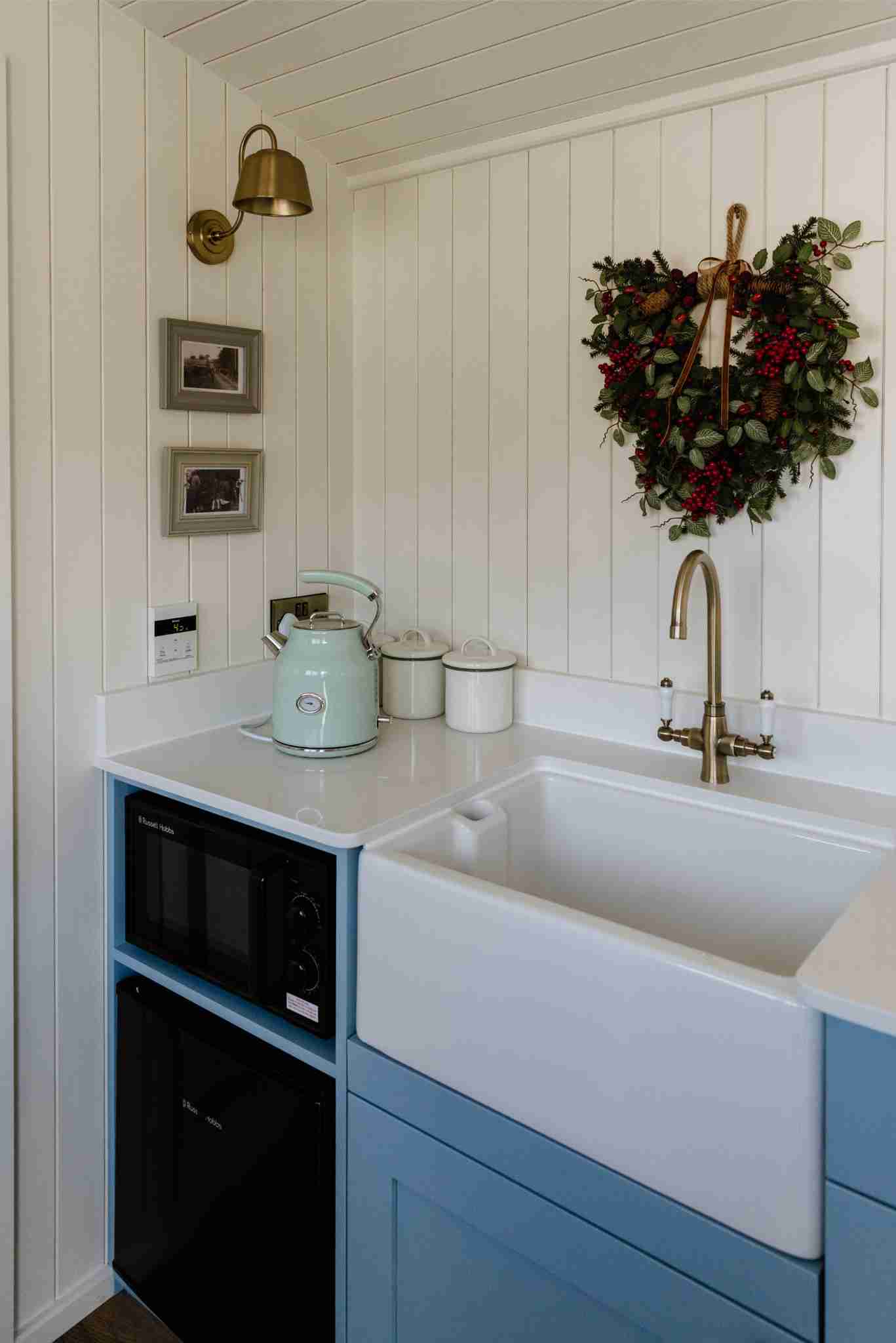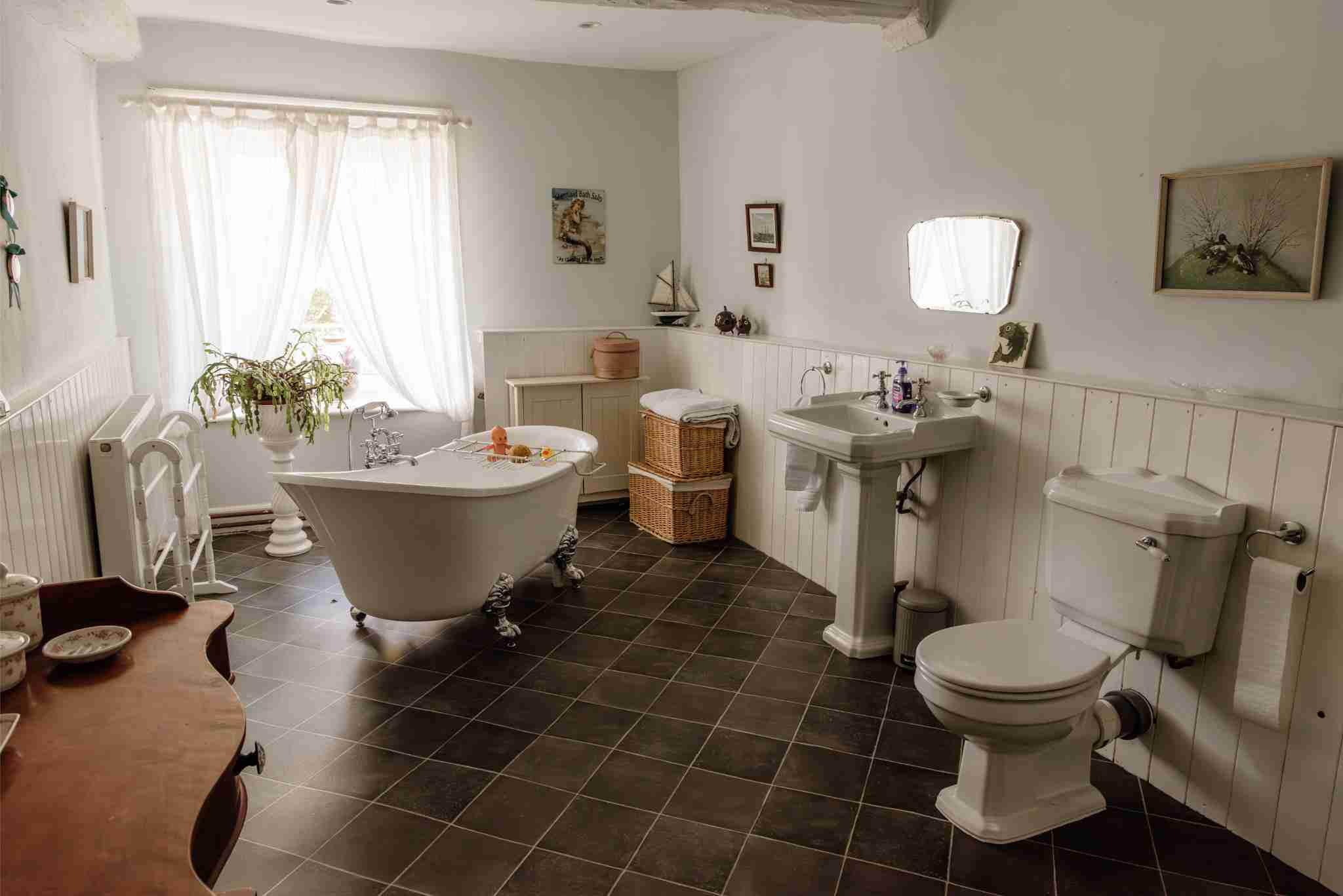 Outdoors, the setting is breath-taking with the surrounding lands and hills creating the most impressive backdrop. There is a huge walled garden where the peacocks roam around the stone steps, green houses, pond and lawns. Beyond this are further paddocks, orchards and fields with wonderful old trees and pathways. To the side is a perfectly decorated shepherd's hut - restful and inviting in its own little courtyard.