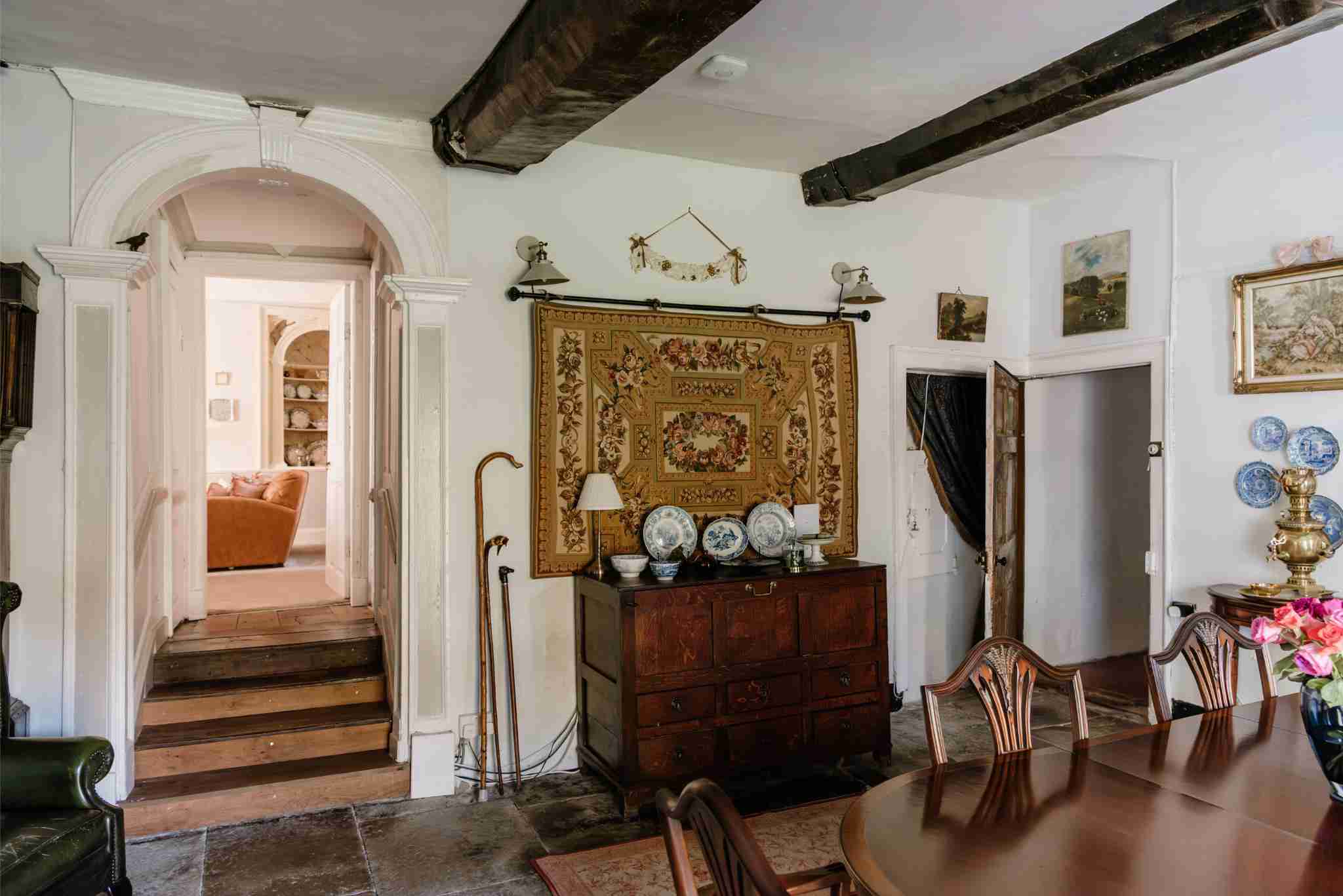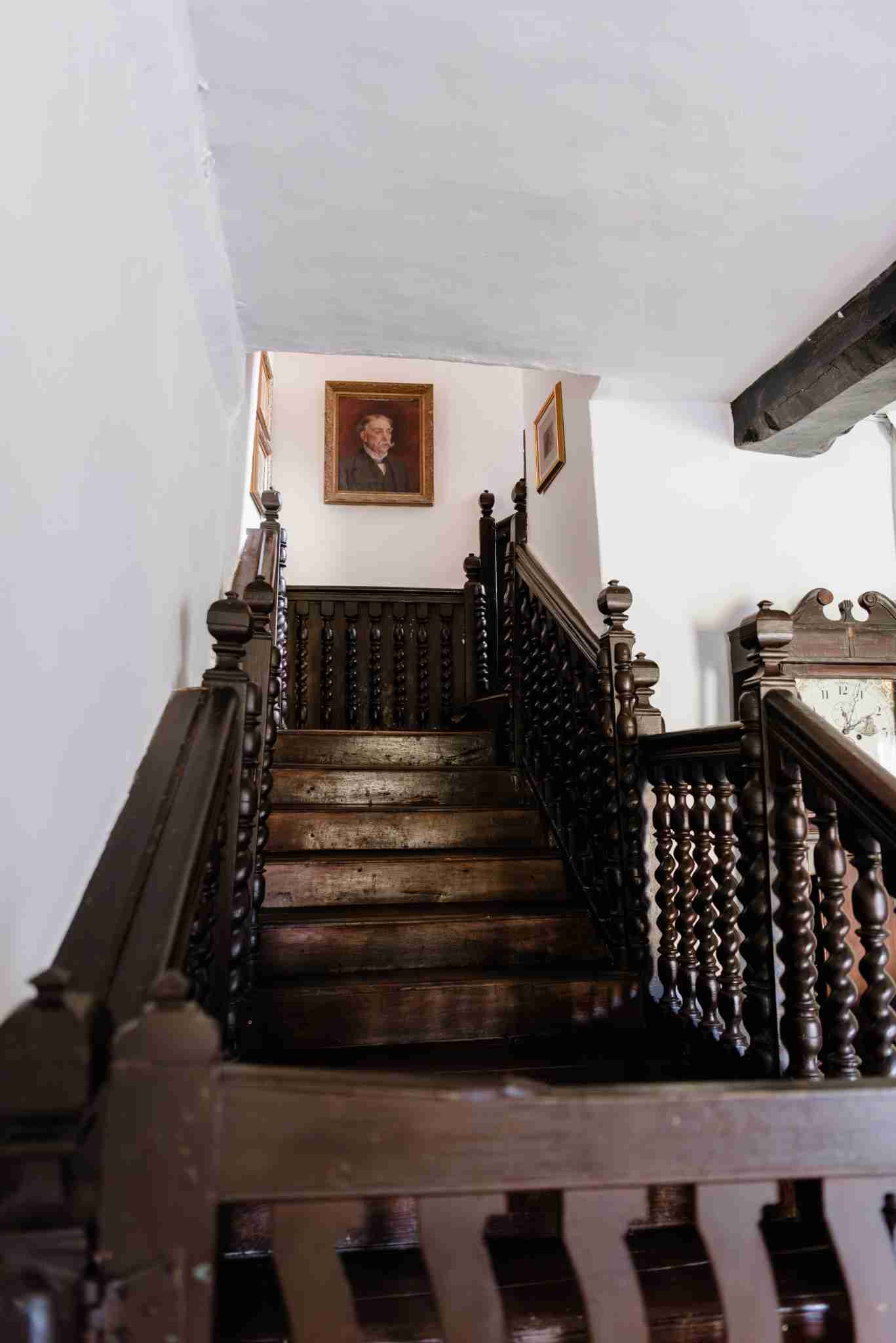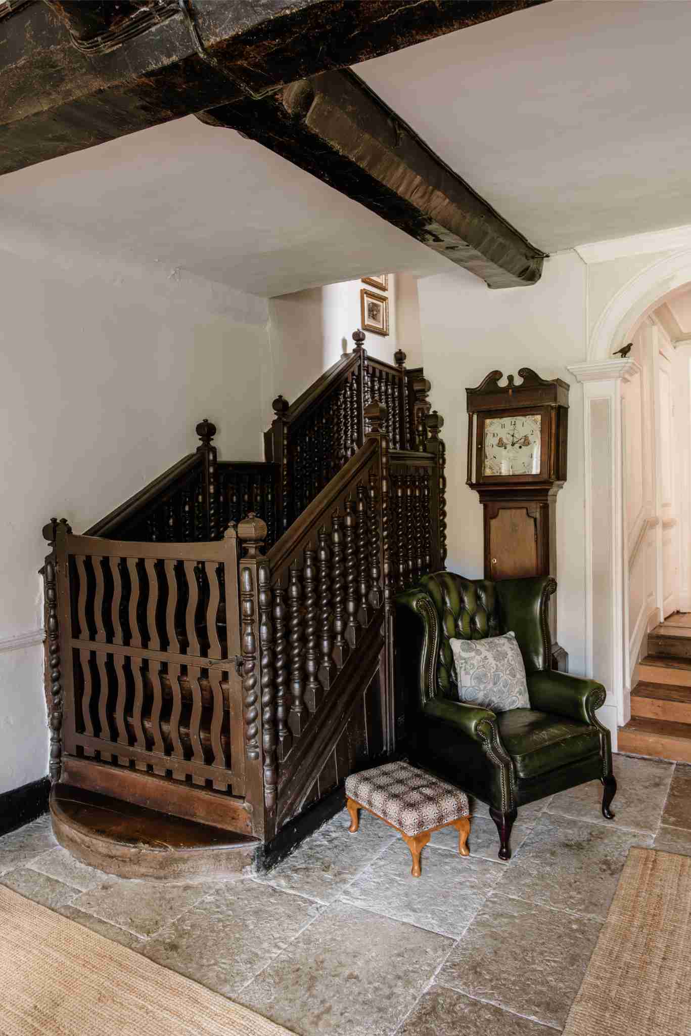Inside the large hall with huge staircase, flagstone floors, fireplace and beams, the history of this place is palpable, and the inside rooms have been carefully, tastefully and painstakingly restored by its current custodian, all period features retained and enhanced.