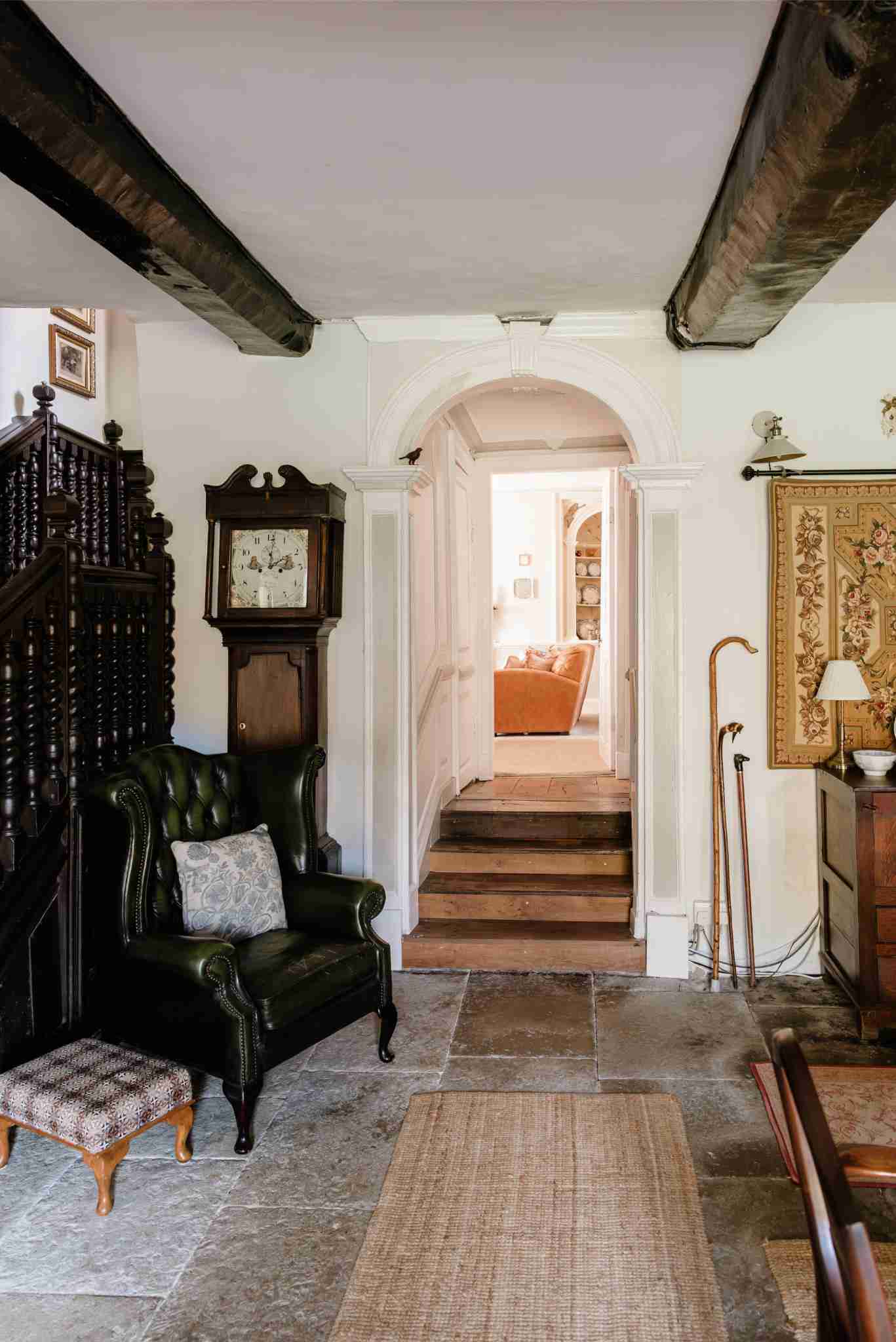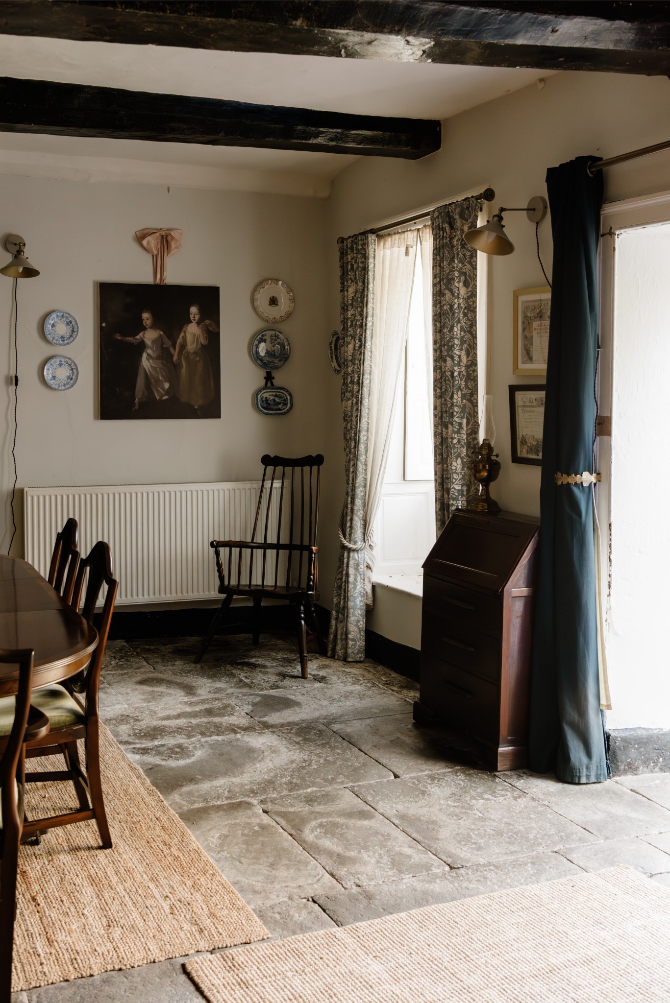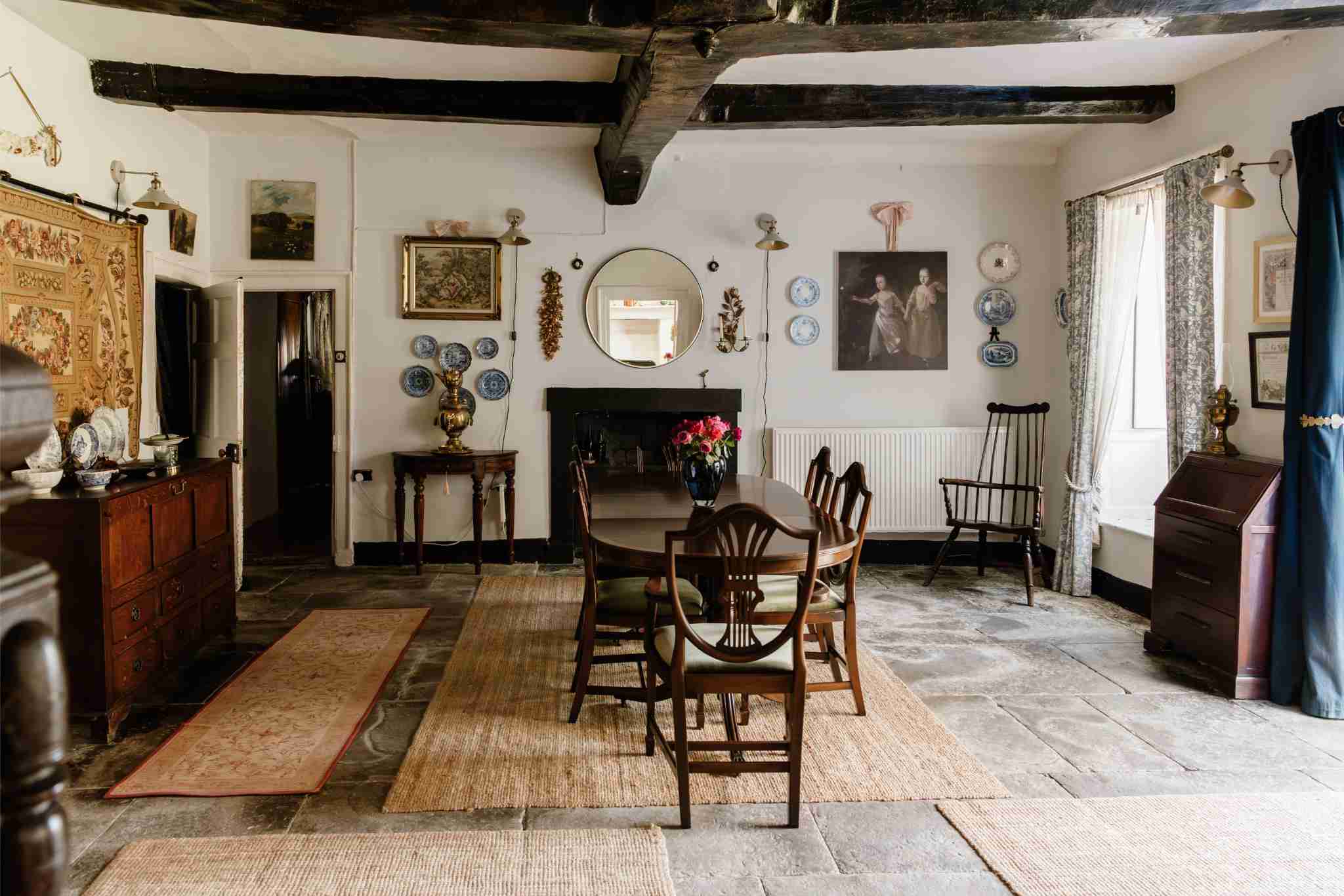 Inside the large hall with huge staircase, flagstone floors, fireplace and beams, the history of this place is palpable, and the inside rooms have been carefully, tastefully and painstakingly restored by its current custodian, all period features retained and enhanced.