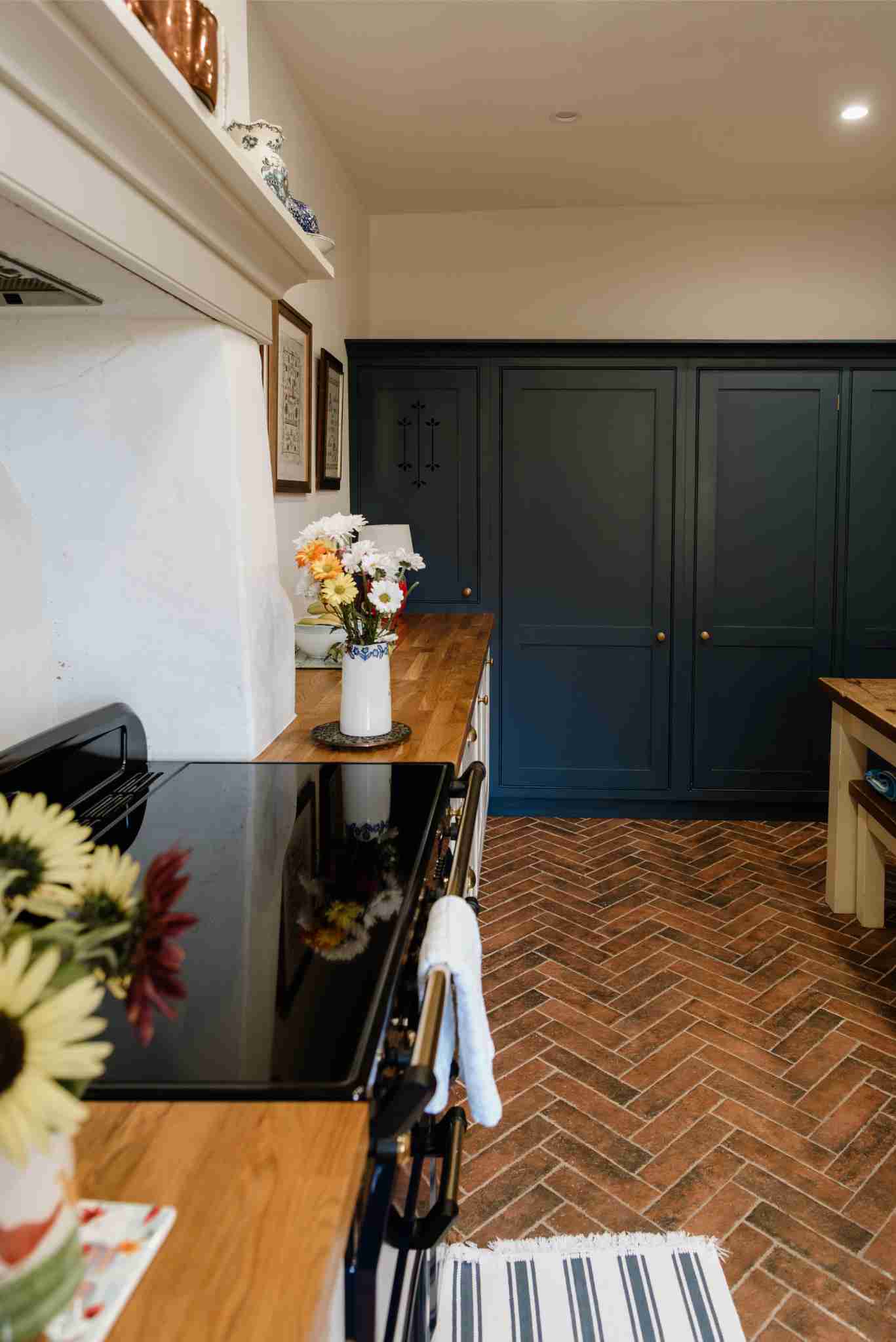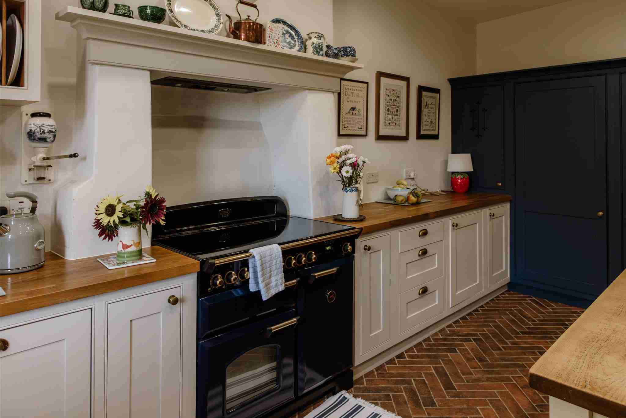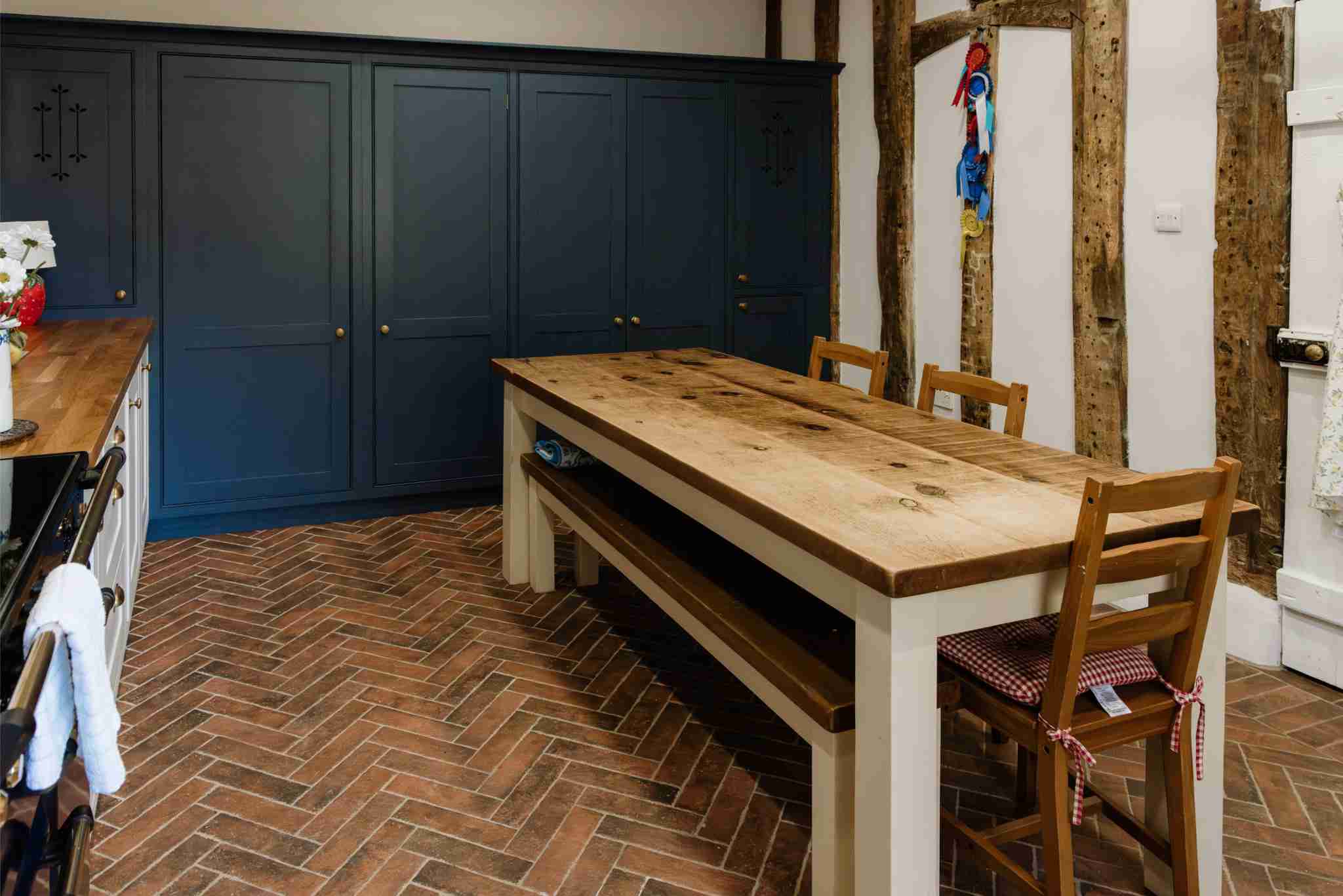 The kitchen is also a wonderful, large space again thoughtfully restored with lovely herringbone bone brick floors, Belfast sink, range cooker and large wood table, with secret cellars!
