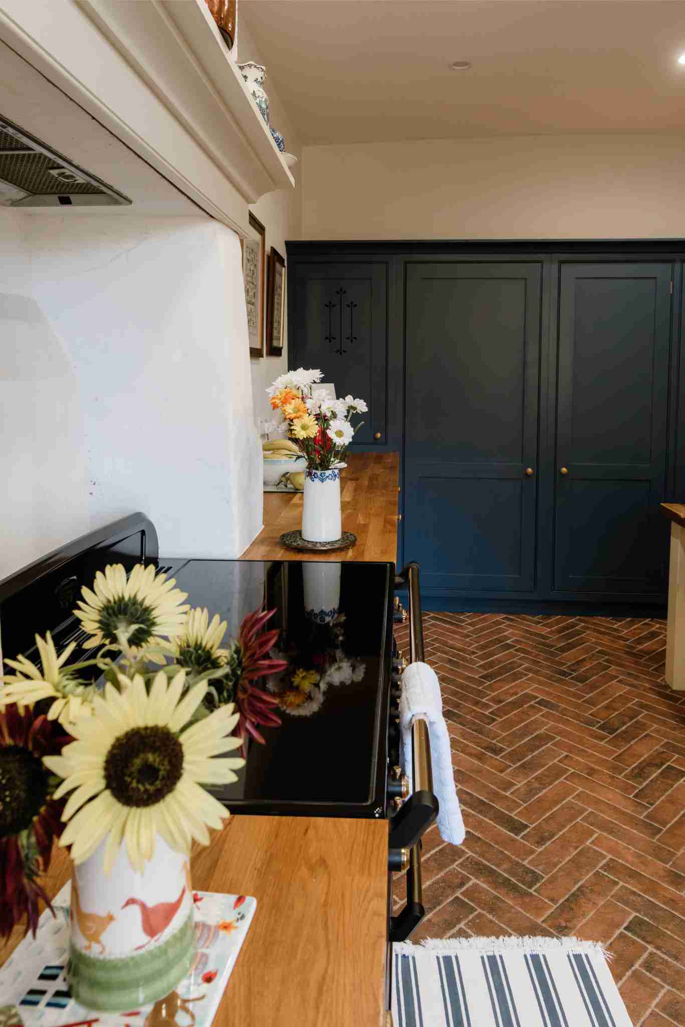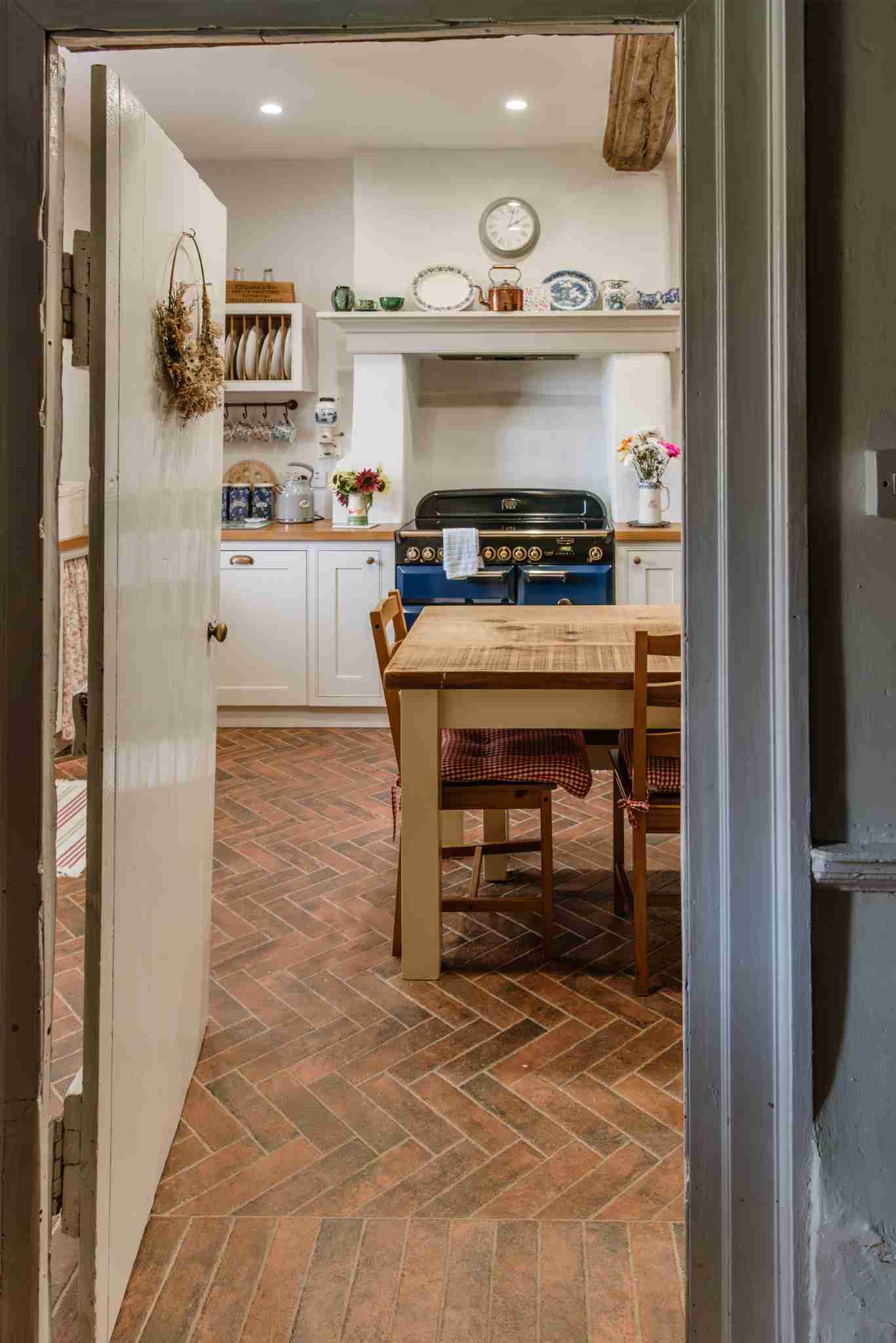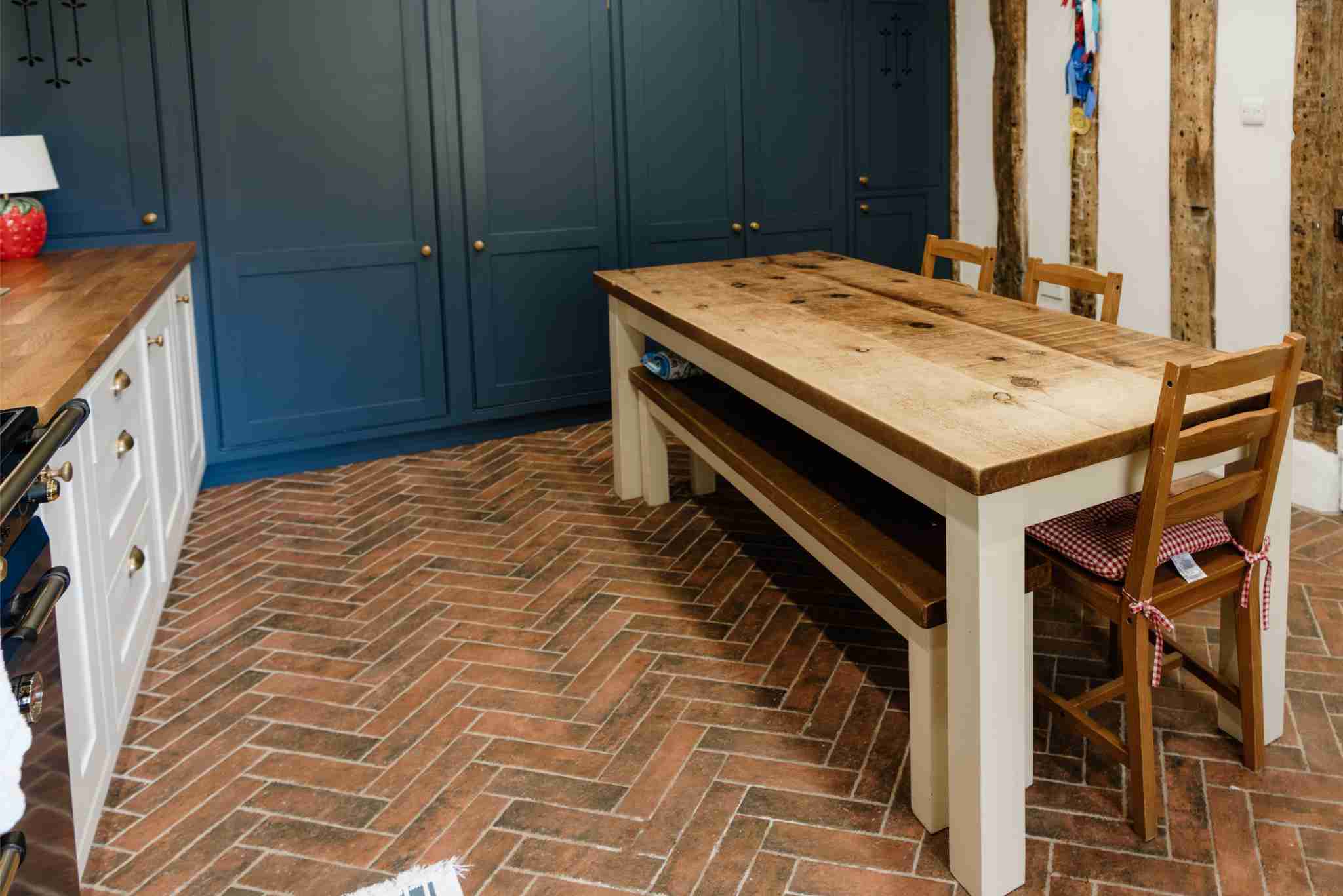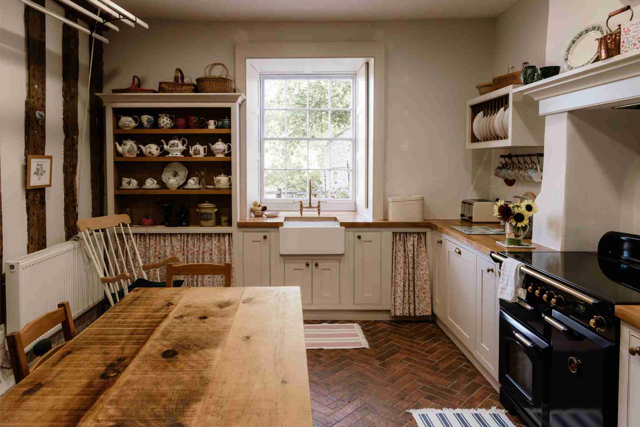 The kitchen is also a wonderful, large space again thoughtfully restored with lovely herringbone bone brick floors, Belfast sink, range cooker and large wood table, with secret cellars!
