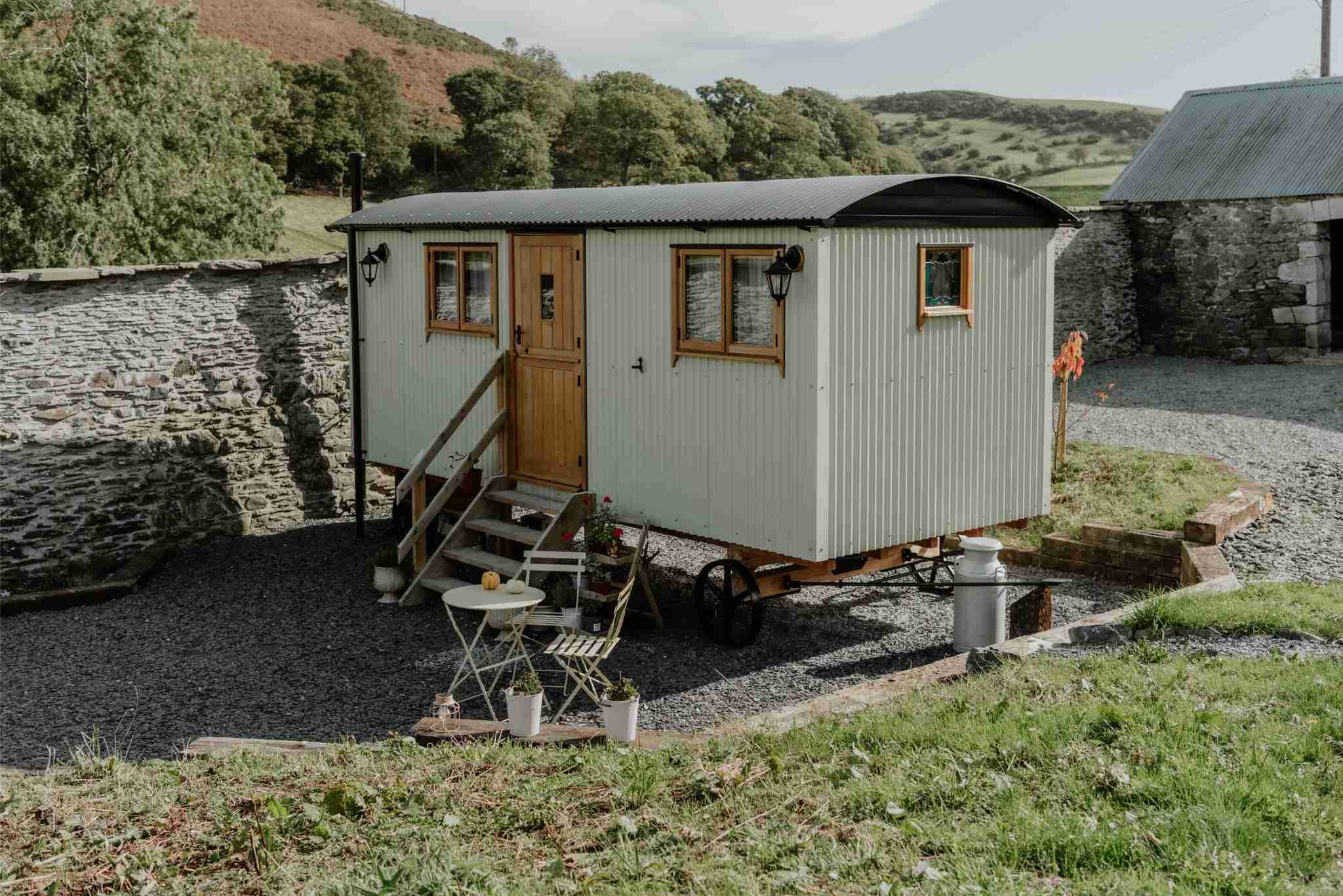 Wealcynn is a large stone built historic farmstead with barns, pond, shepherds hut, walled gardens, paddocks and fields – set in the most incredible natural landscape in the Welsh hills beneath an iron age hillfort and next to a large reservoir.