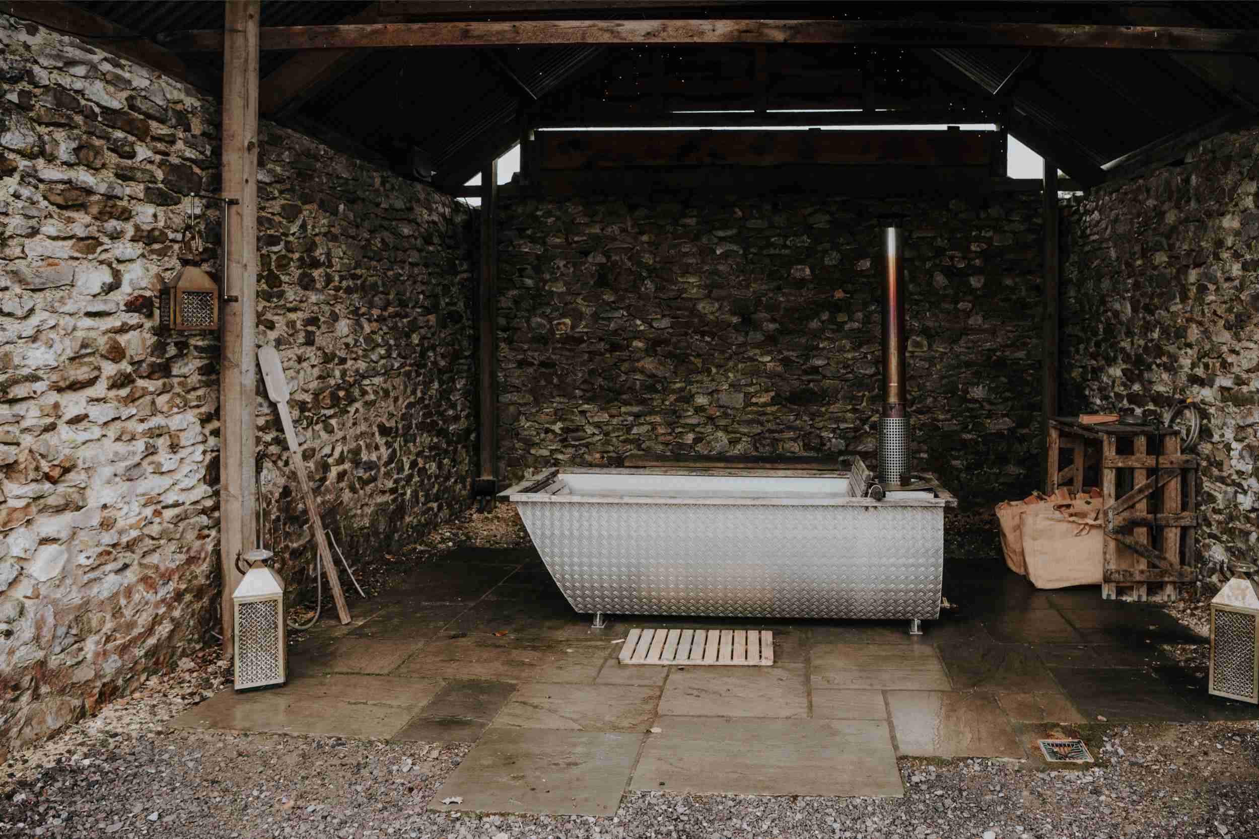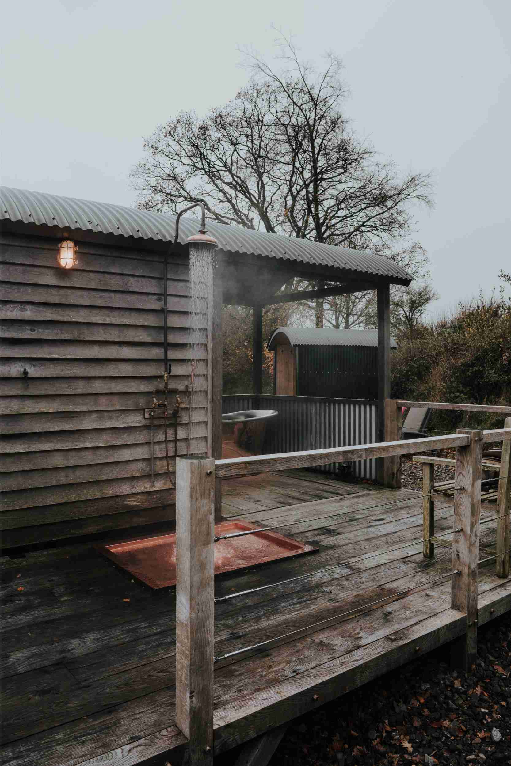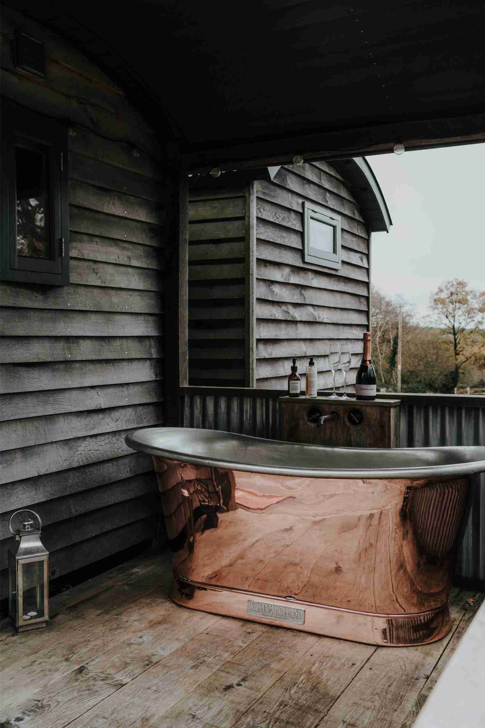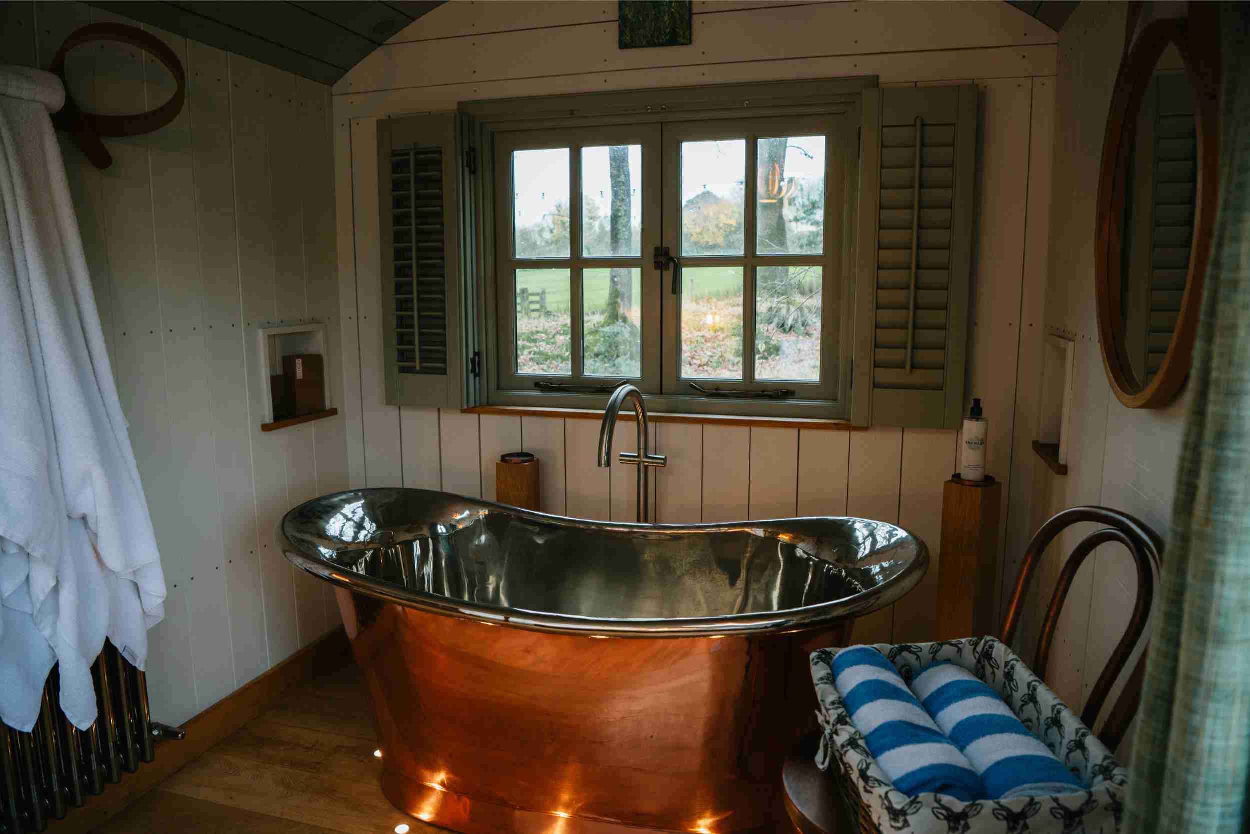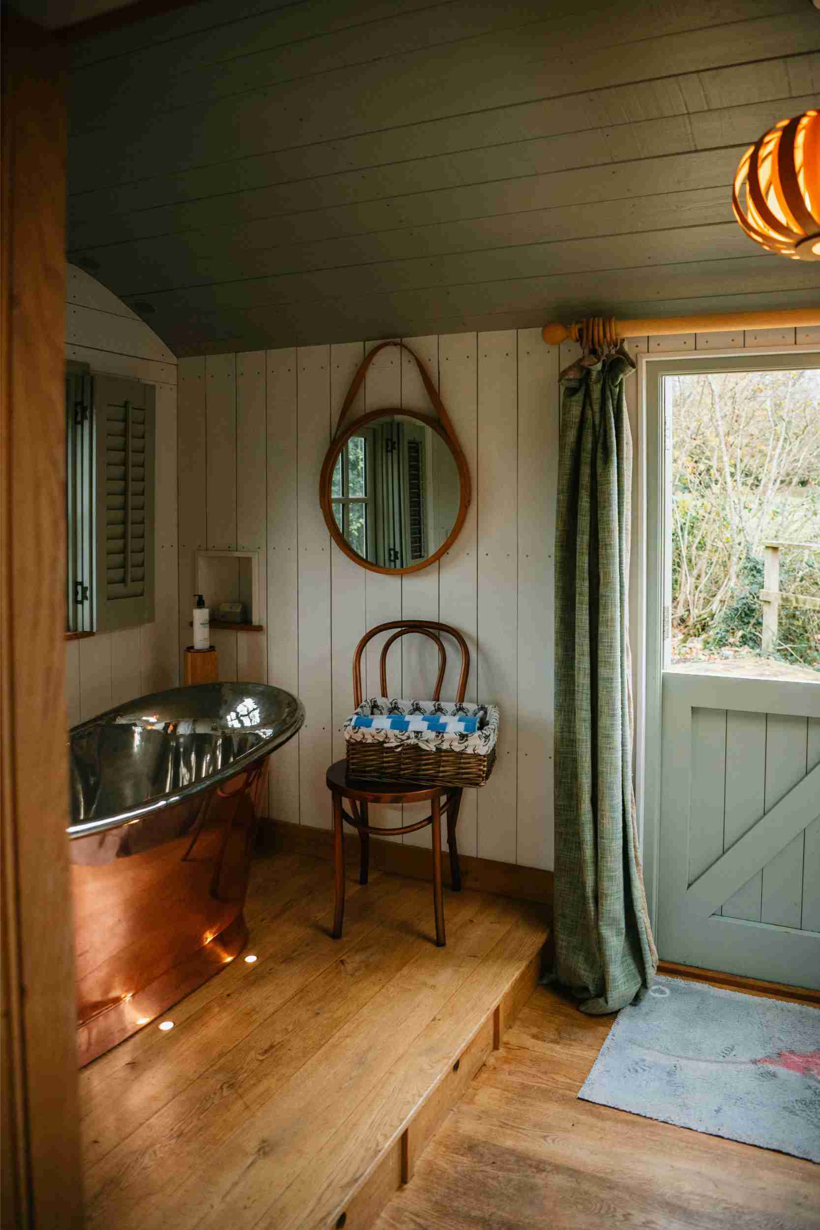 The interiors of the huts are wonderfully designed with gorgeous fittings such as Belfast sinks, wood burning stoves, natural fabrics and materials, as well as copper baths, wood fired hot tubs, outdoor showers and more. The farmhouse is also available with period features throughout.