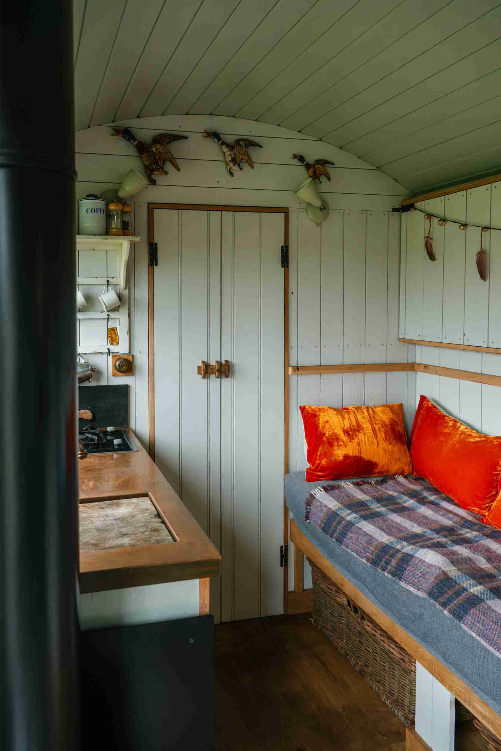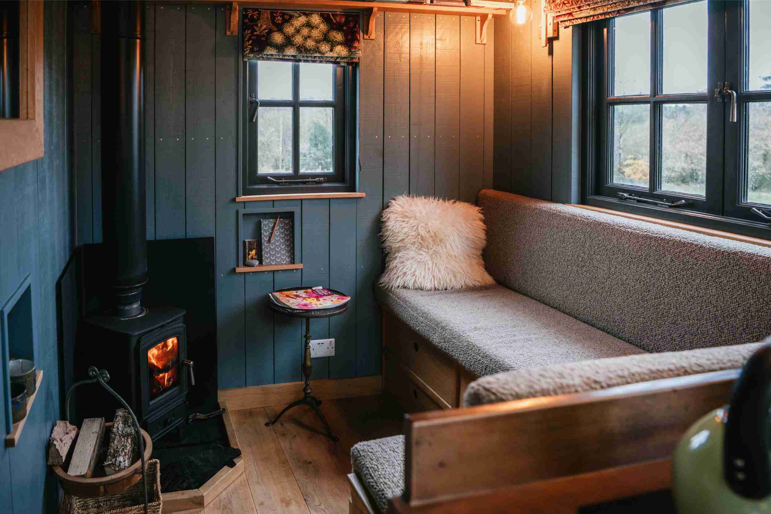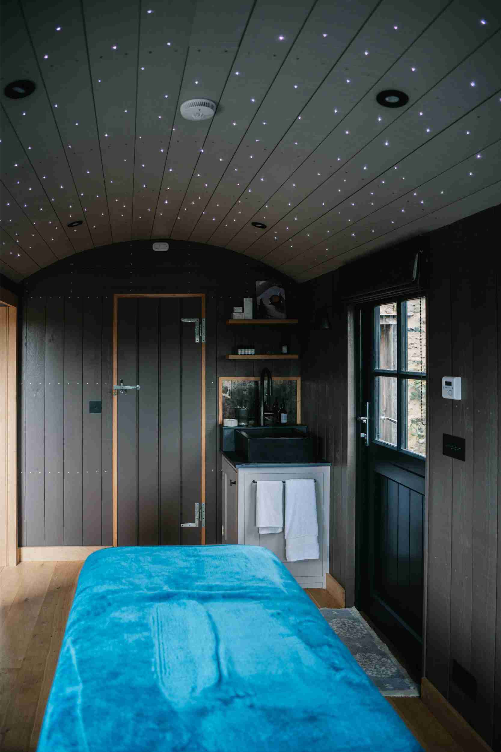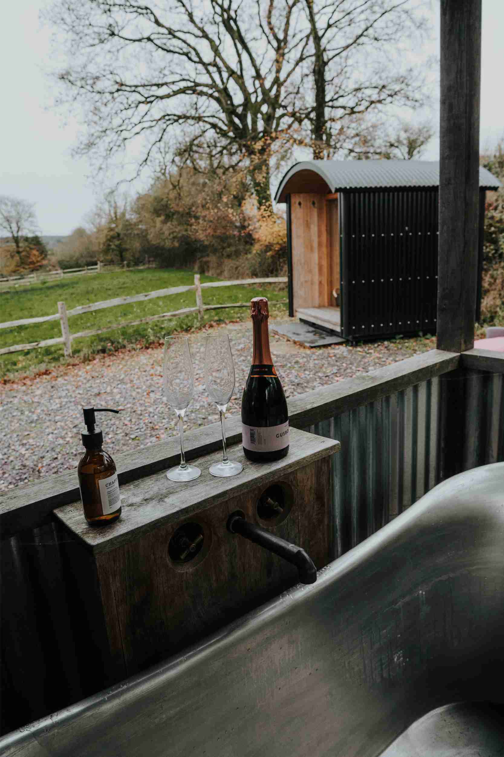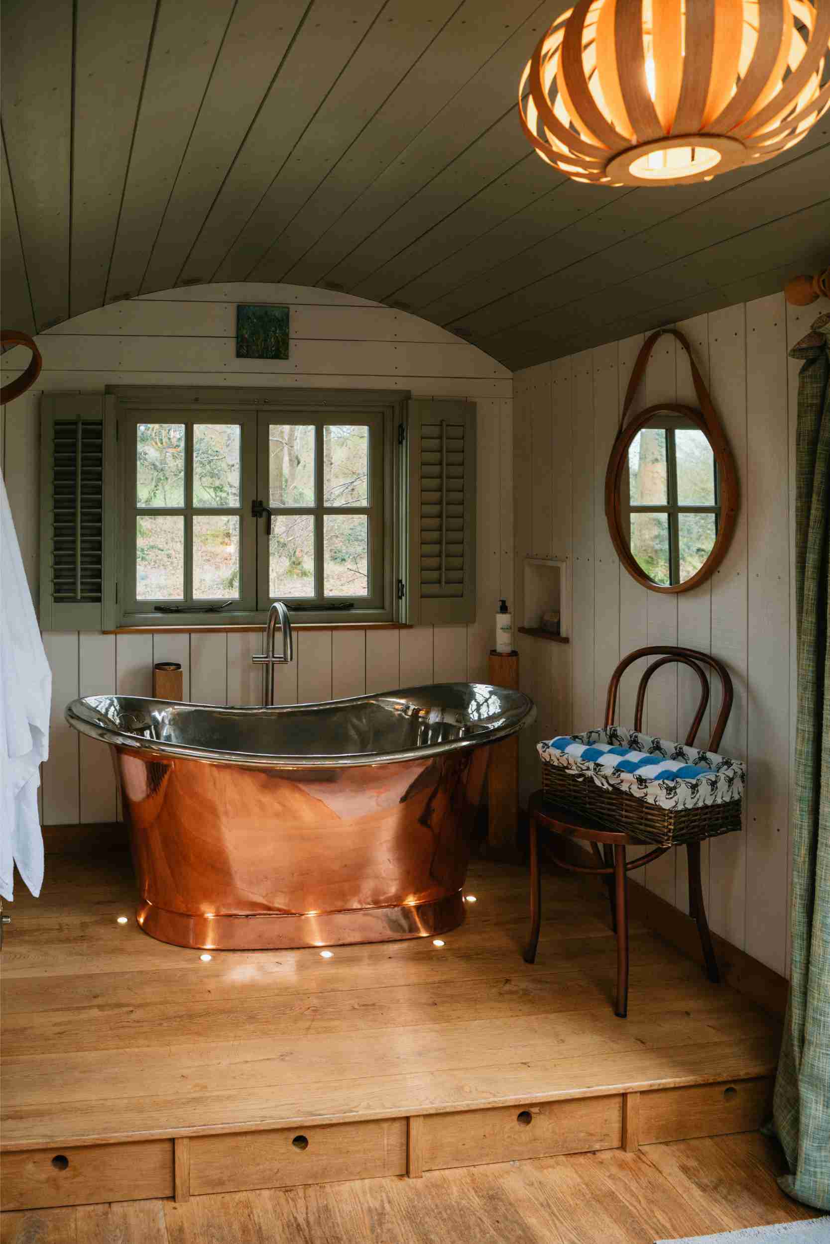 The interiors of the huts are wonderfully designed with gorgeous fittings such as Belfast sinks, wood burning stoves, natural fabrics and materials, as well as copper baths, wood fired hot tubs, outdoor showers and more. The farmhouse is also available with period features throughout.