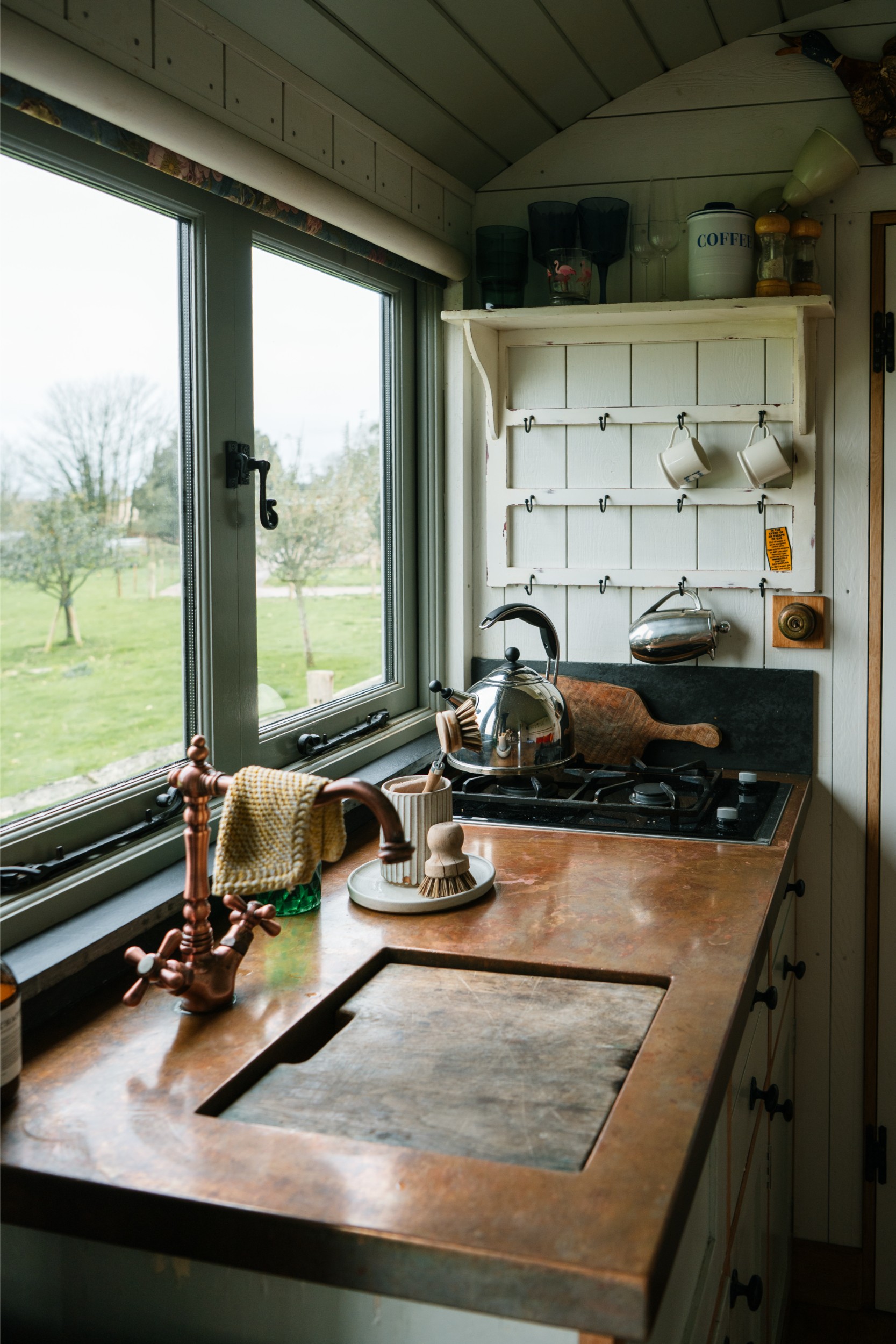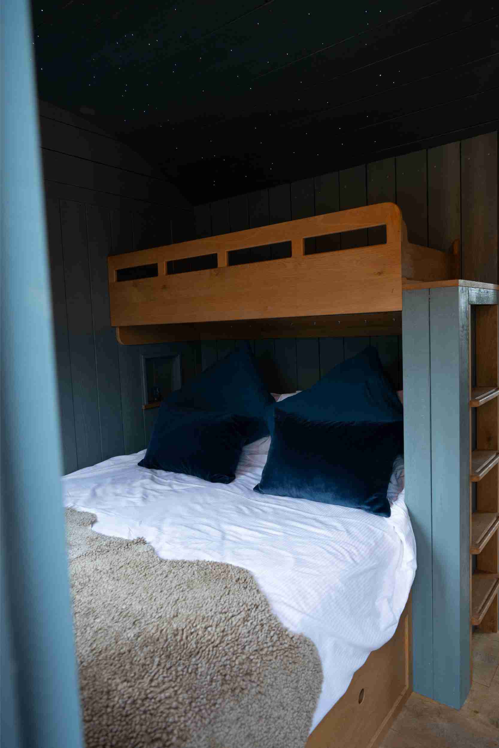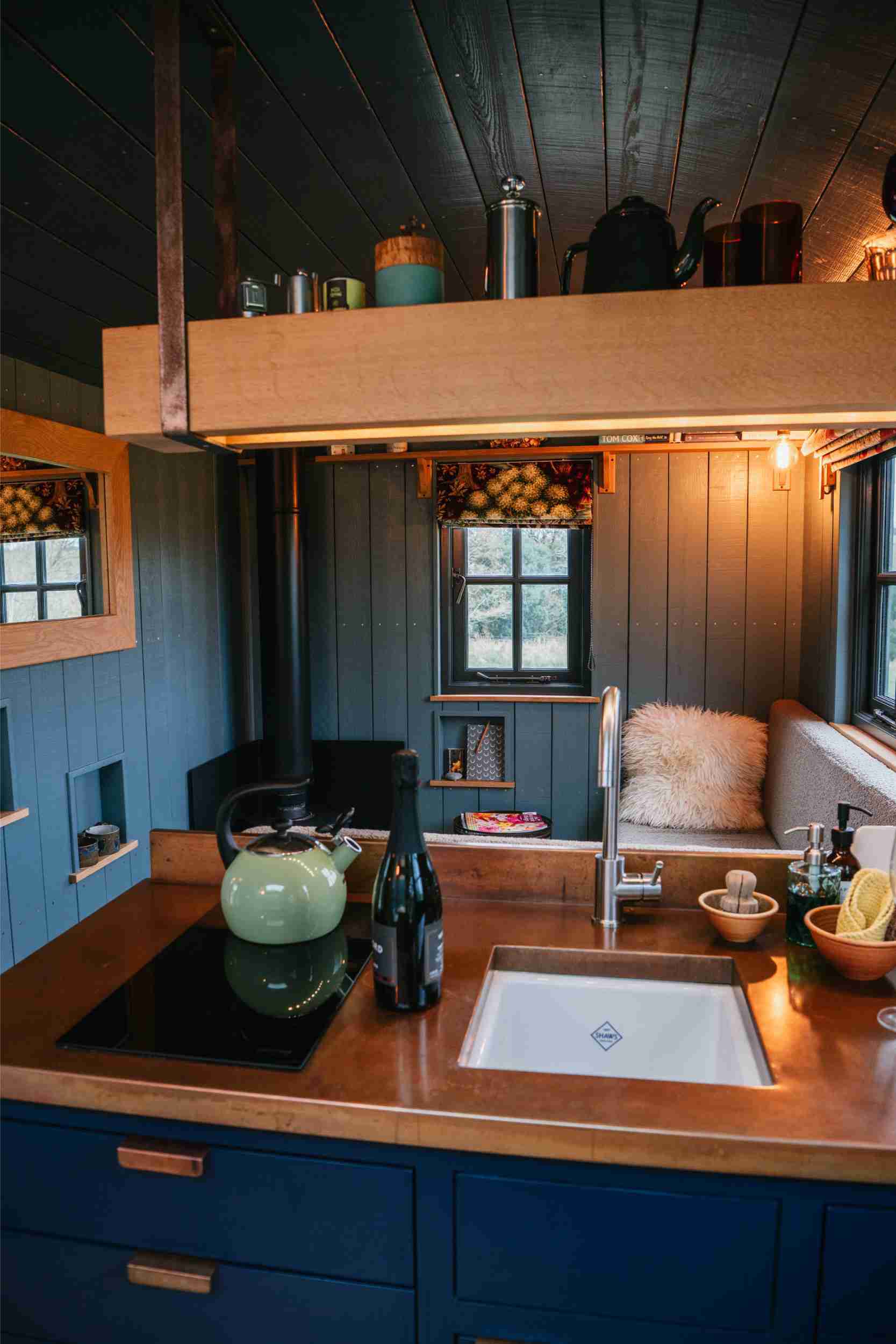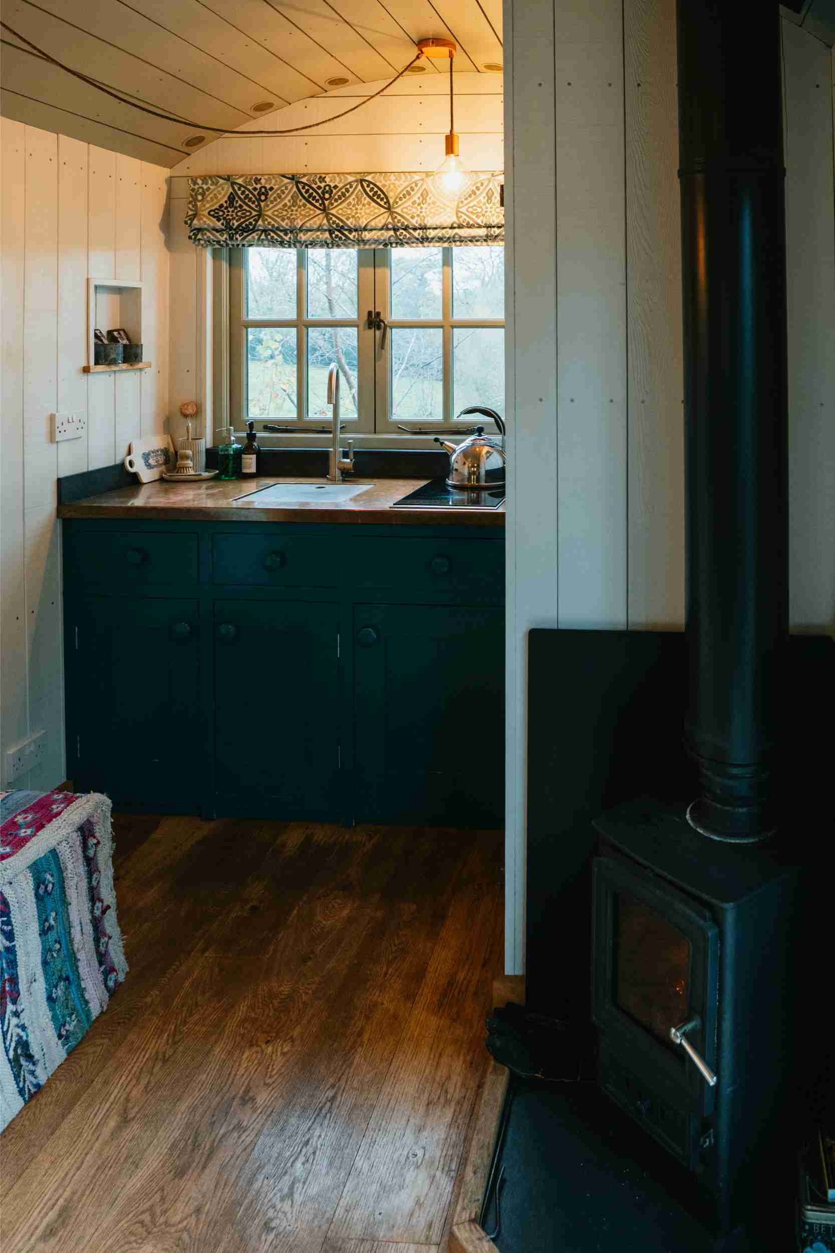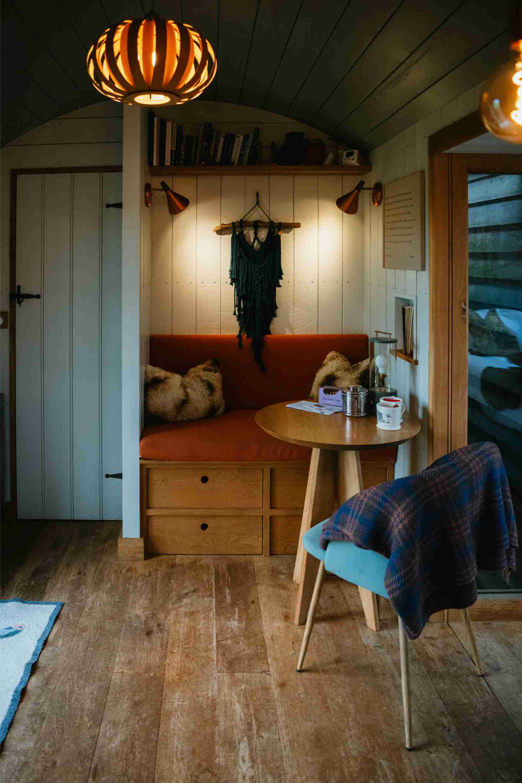 The interiors of the huts are wonderfully designed with gorgeous fittings such as Belfast sinks, wood burning stoves, natural fabrics and materials, as well as copper baths, wood fired hot tubs, outdoor showers and more. The farmhouse is also available with period features throughout.