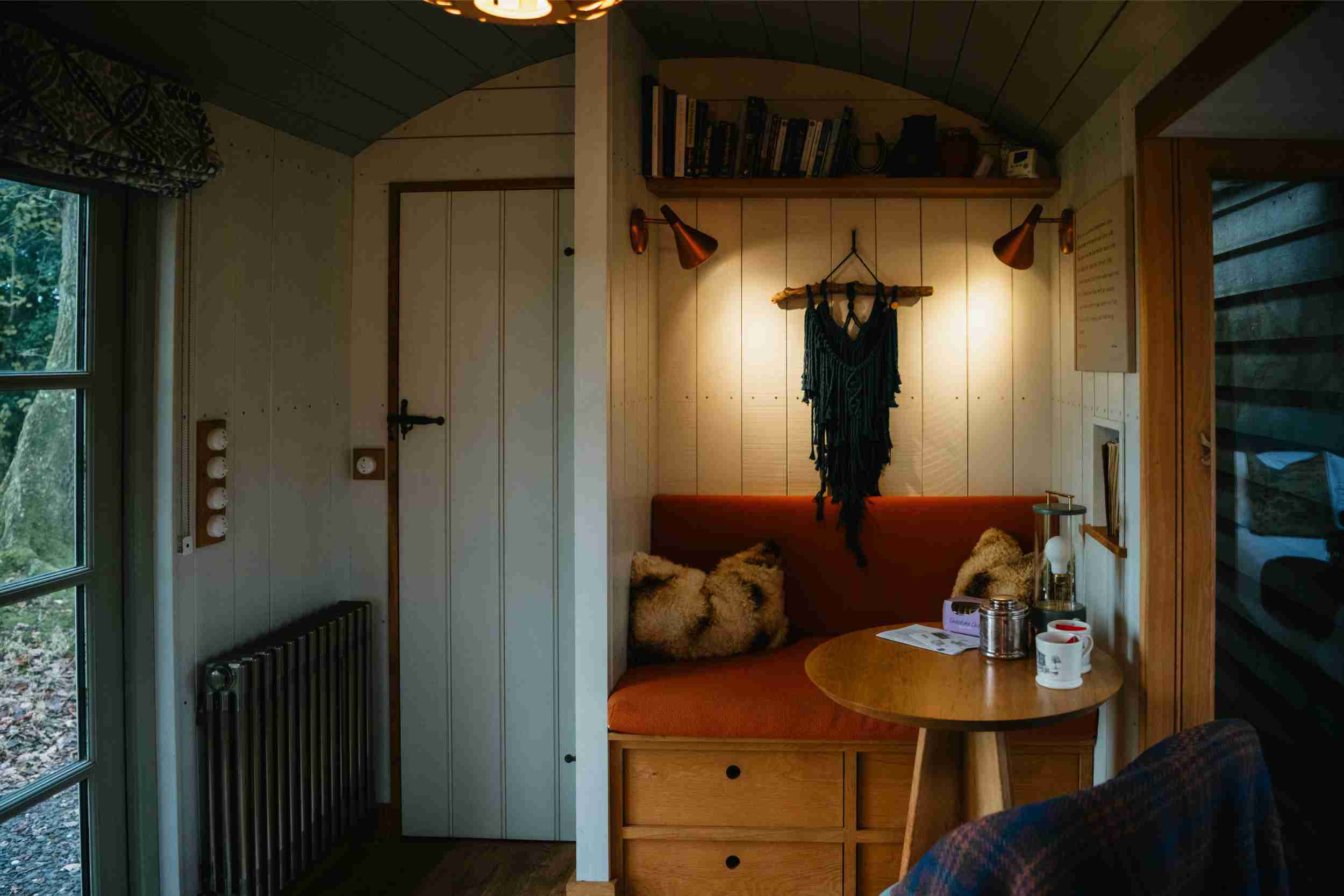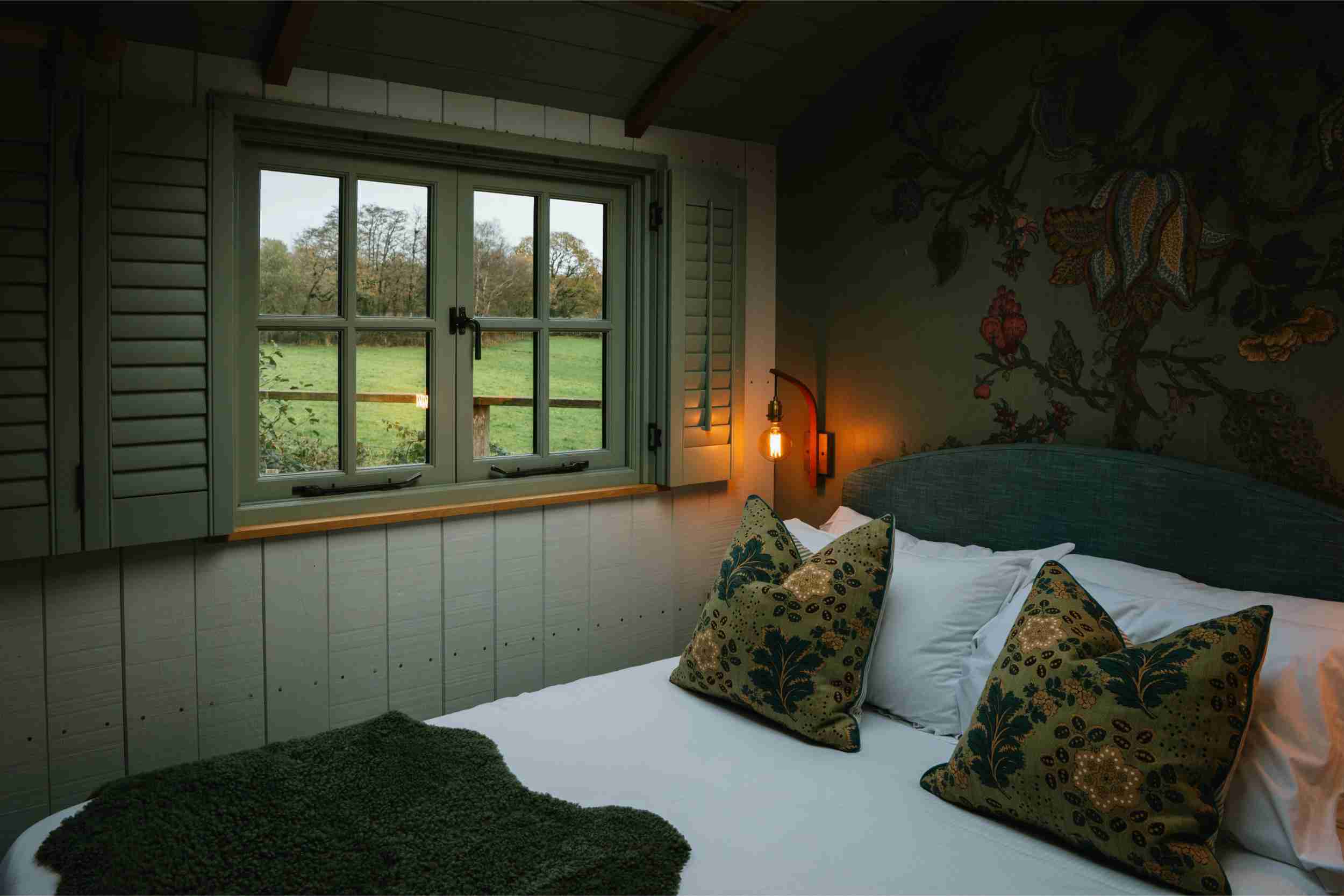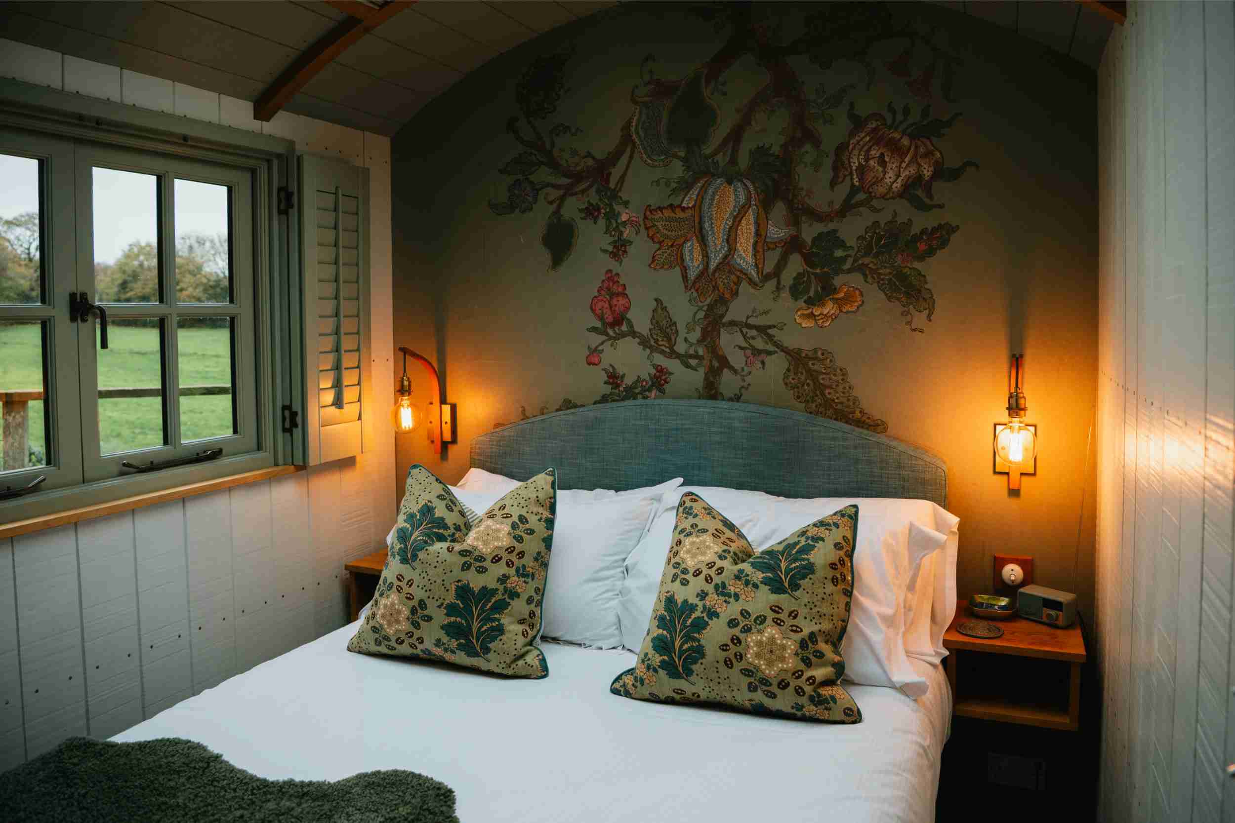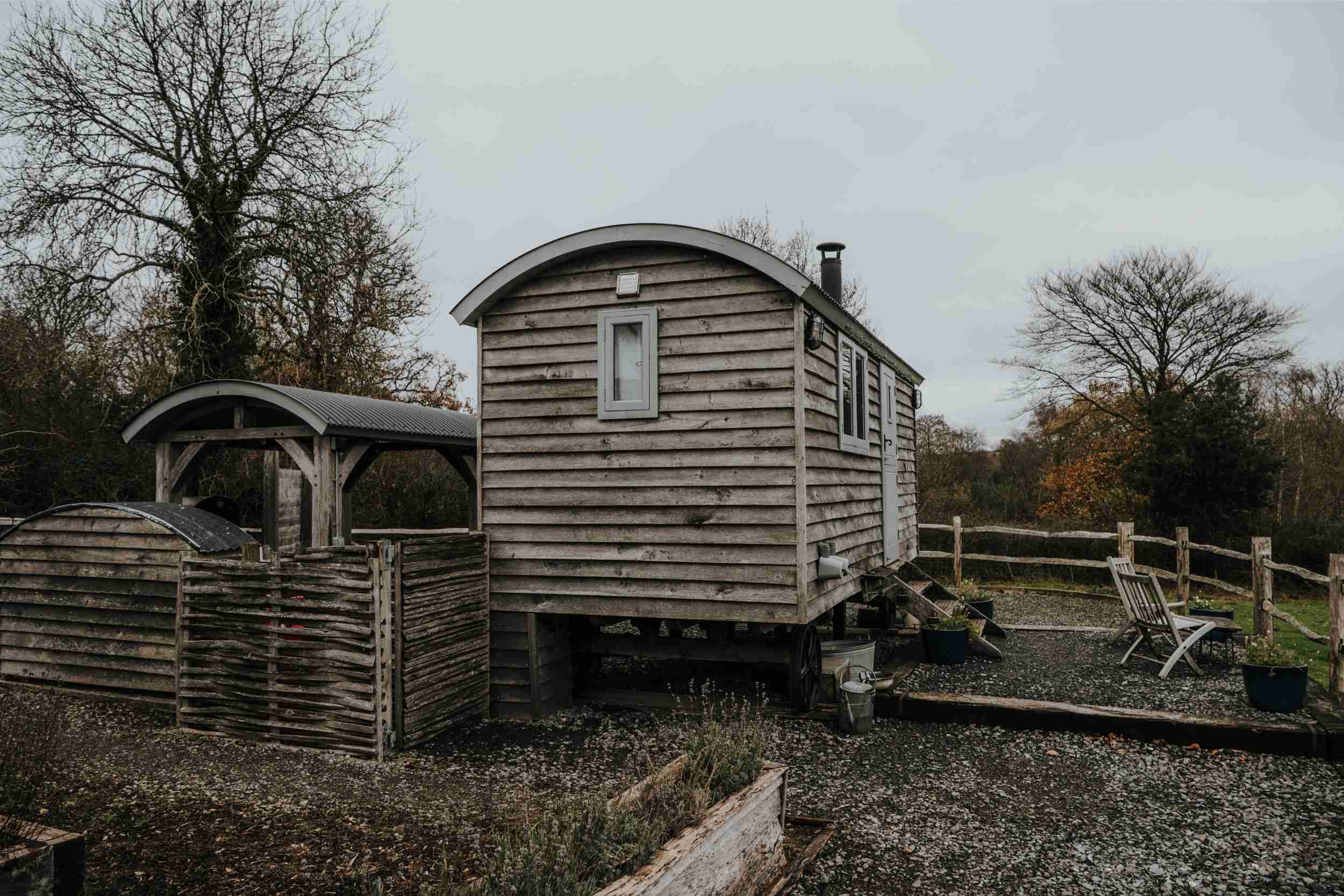 Luxurious Somerset shepherds' huts in ancient hills, orchards, medieval copse, woodlands and historic farmhouse