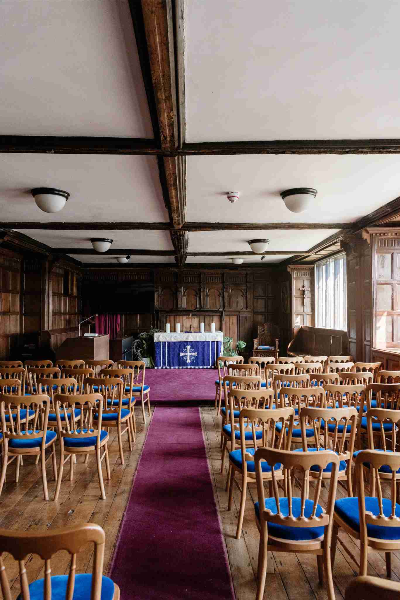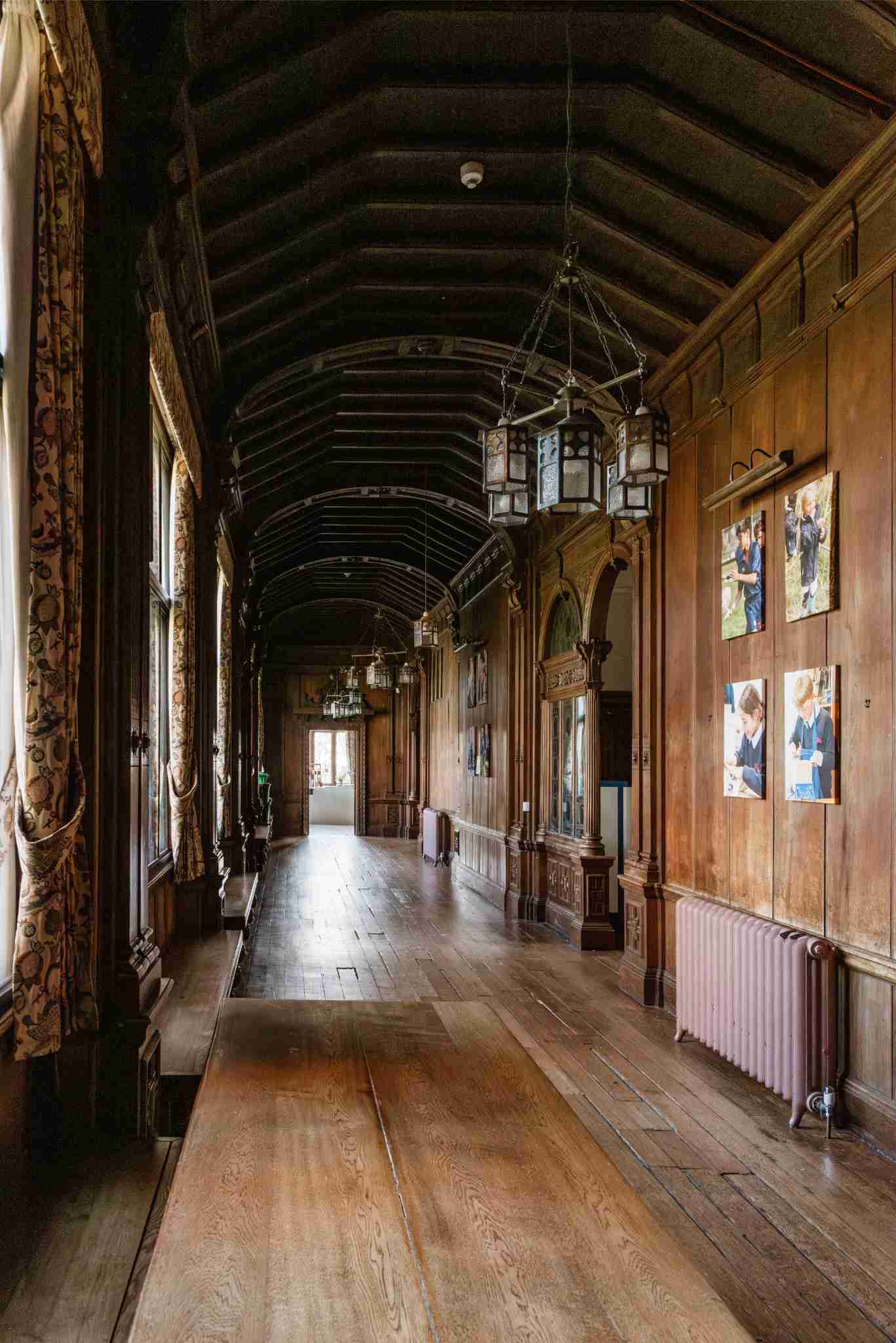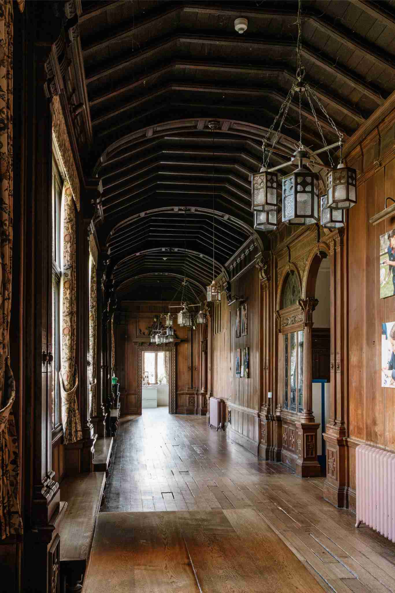 Larhus is an extensive gothic school which would be just amazing for period films, as well as photoshoots. The exterior is breath-taking with an incredible entrance arch with mullioned leaded light windows and ornate stonework, bell tower and carvings. The brick, stone and half timbered exterior is both rambling and imposing and very impressive.