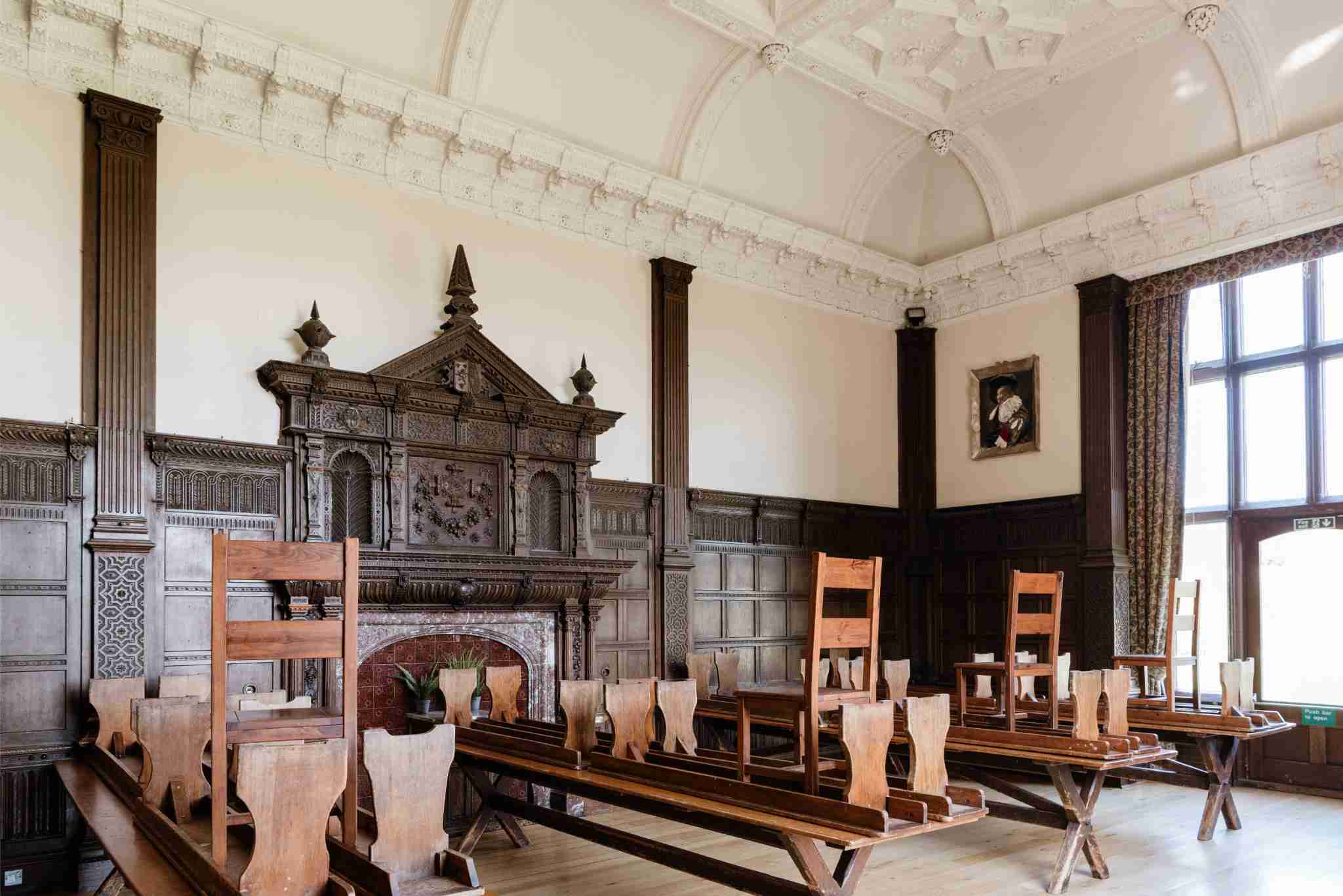 Inside you have incredible panelled hallways, huge rooms with plasterwork ceilings and ornate stained glass and lead windows. All the period features are here including some huge carved fireplaces, an immense carved wood staircase, large floor to ceiling windows, exposed beams and more. The possibilities for films, events, and photoshoots here are innumerate.