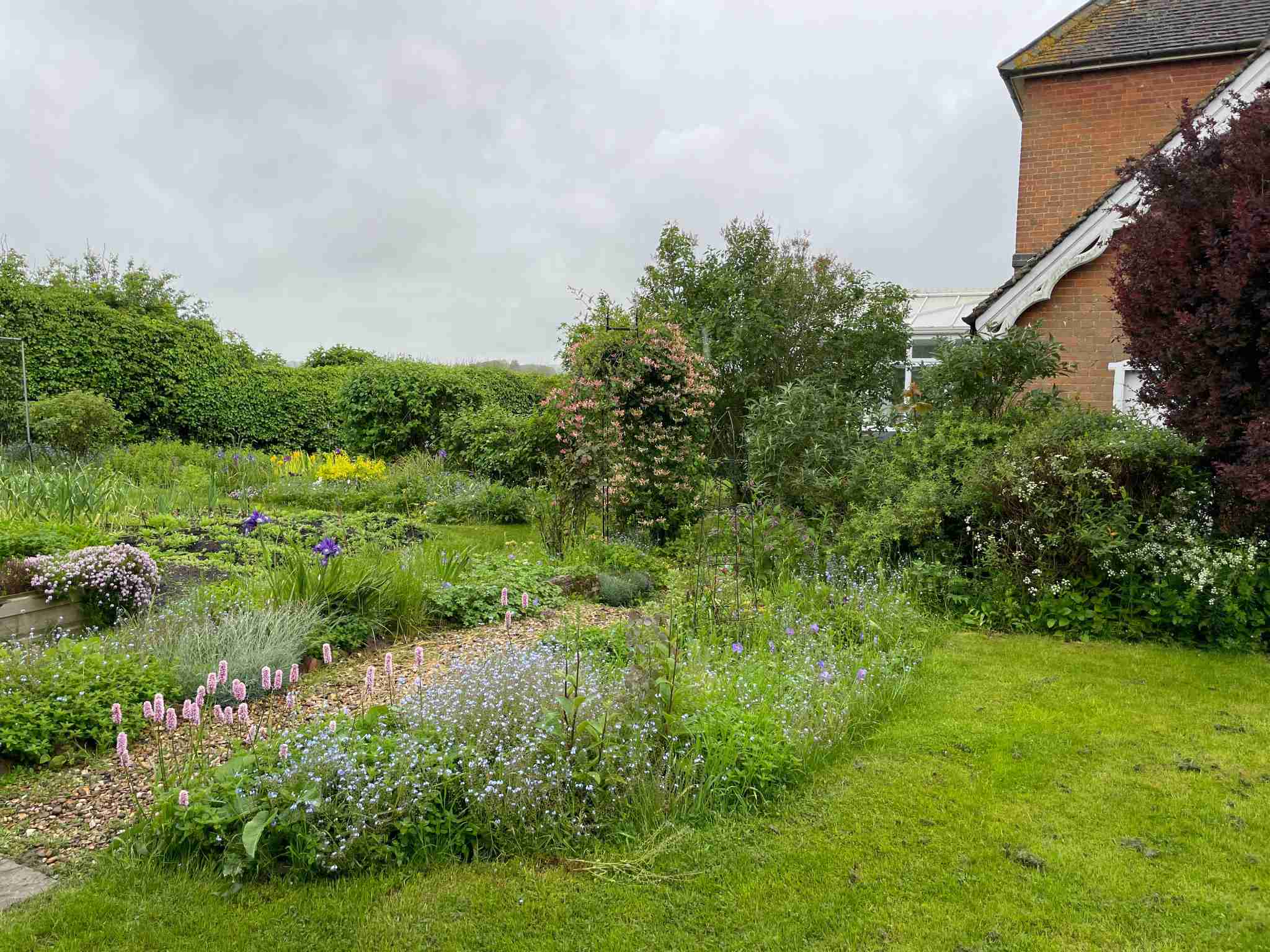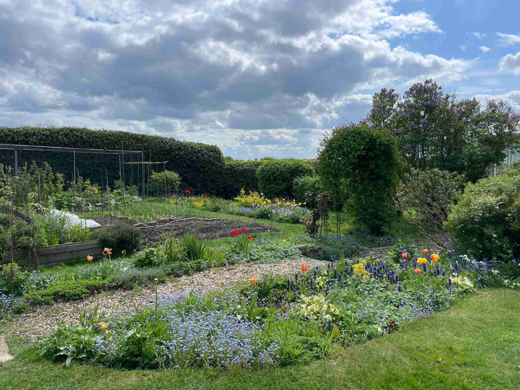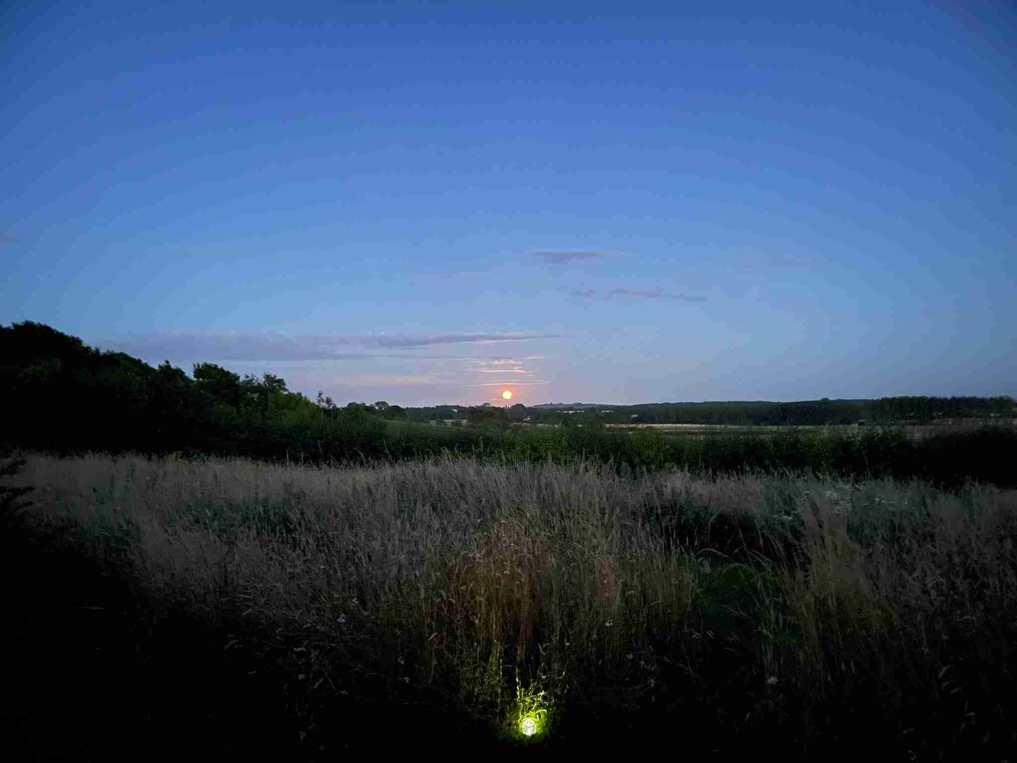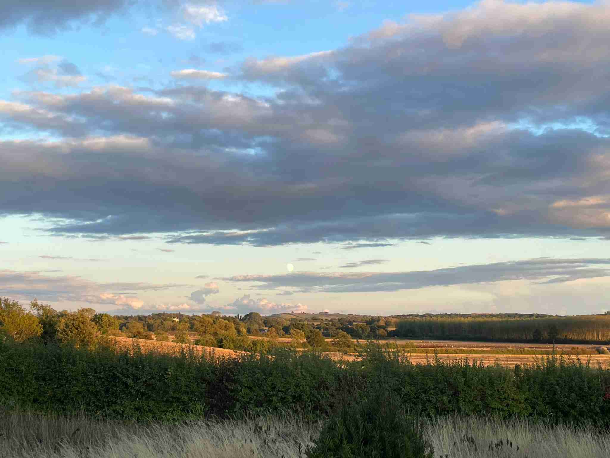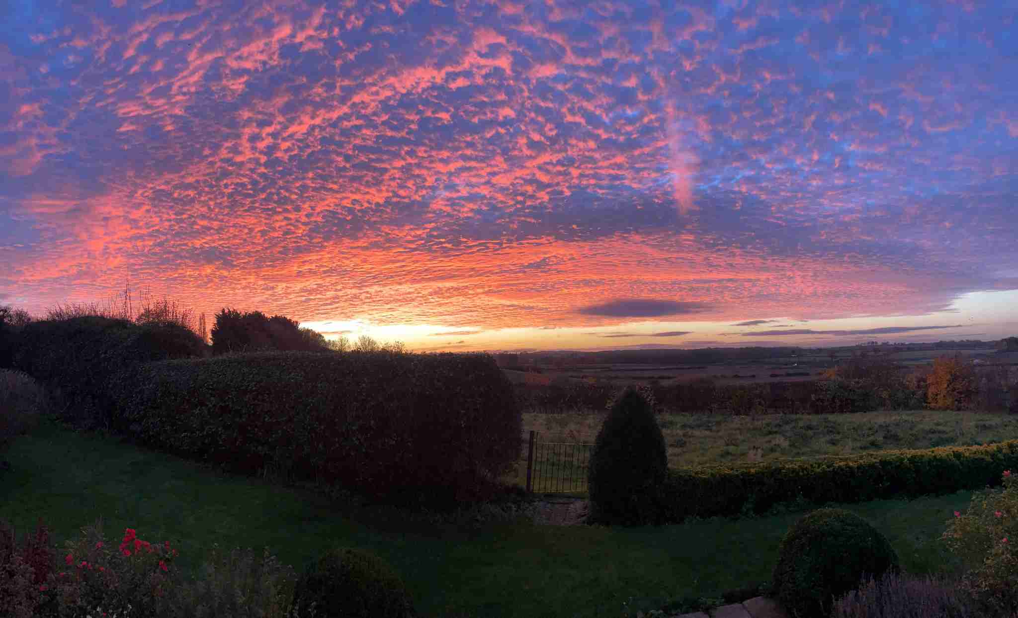 A glorious paddock with naturalised lupins in an array of colours as well as, buttercups, cow parsley and oxeye daisies. The paddock has far reaching countryside views to the south east across arable fields and woodland. The gradient of the meadow allows for some fantastic sunrises across the broad skyline it looks out to.